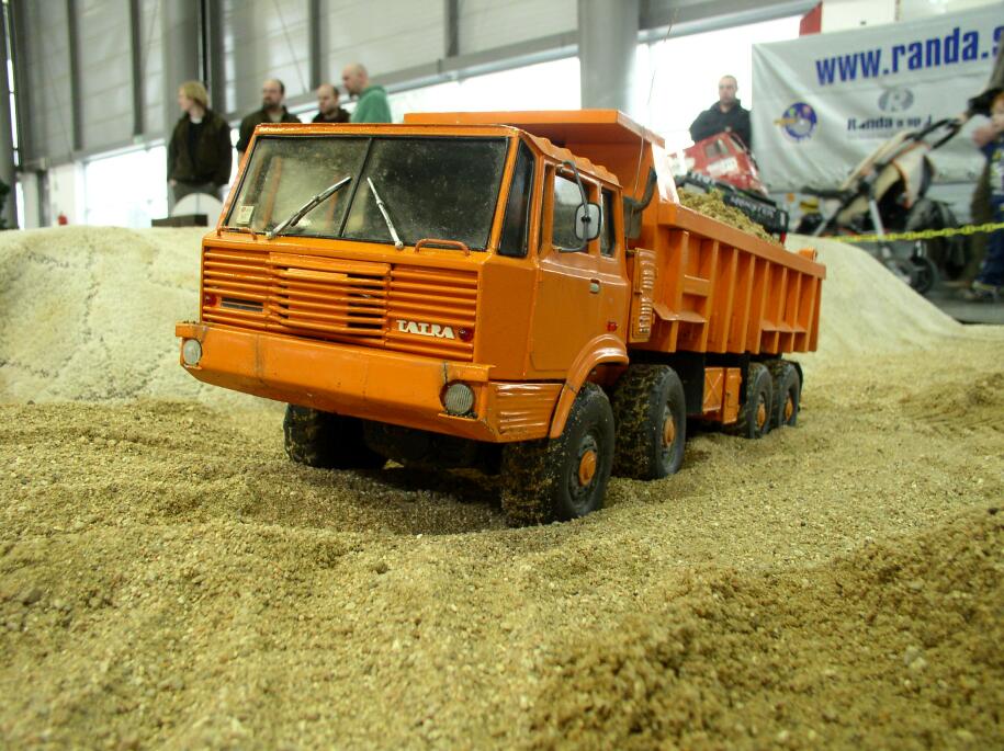 T815-7 (měřítko 1:10) už je v laku, to auto úžasně prokouklo. Jak z toho nekouká žádný kus hliníku, tak celá Tatra působí najednou velmi čistě a realisticky. Tím pádem se z ní stala leštěnka, obdržela zákaz jízdy v terénu, aby se neušpinila, a její hrdý majitel si jí jistě bude hledět aspoň tak, jako si já hledím své T130. A dokonce stála na podstavcích, aby se jí nekazily pera :) . Tak jezdila hlavně "babča" – 12 let stará trialová T138 NT 4x4. A jezdila velmi ohleduplně k ostatním – žádné nízké průlety maximální rychlostí.