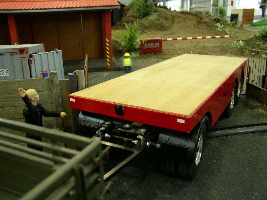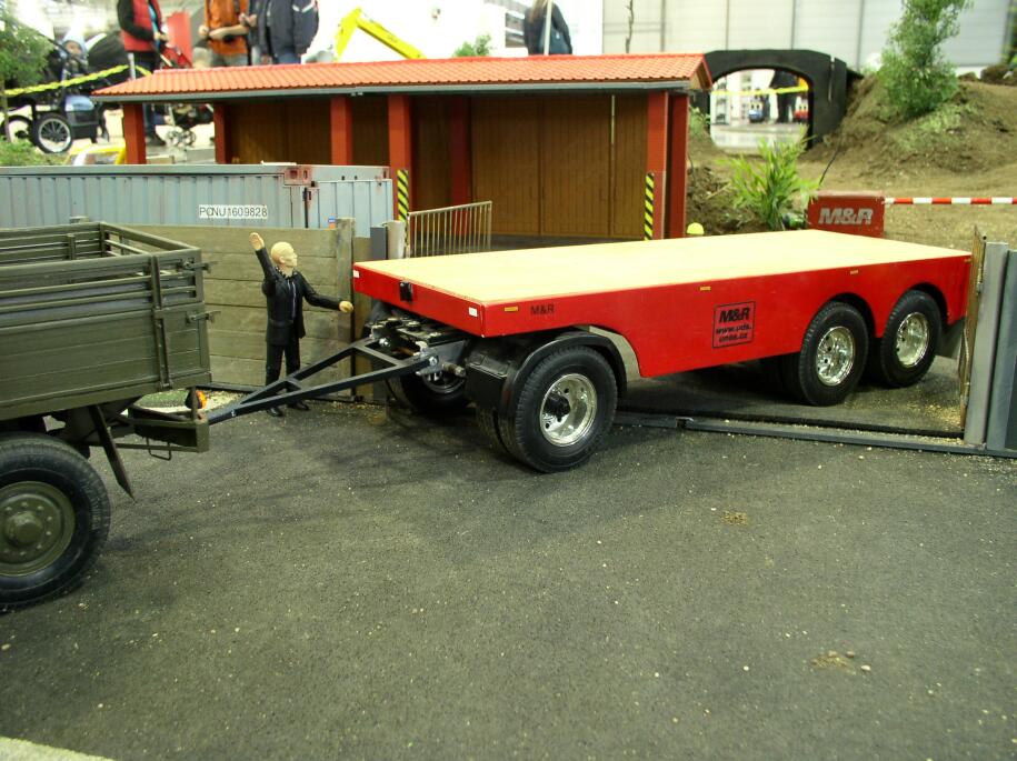 Jako tažné vozidlo jsem si opět vybral něco, co "skvěle" manévruje – Tatra 130 zatáčí mizerně i samotná, natož když má manévrovat s přívěsem. Vlek akorát nešel zapojit přímo do "čuby" na Tatře, tak jsme museli trochu improvizovat. Nakonec jsem z M&R parkoviště vyjel, aniž bych vyvrátil vrata nebo přejel pracovníka ostrahy.