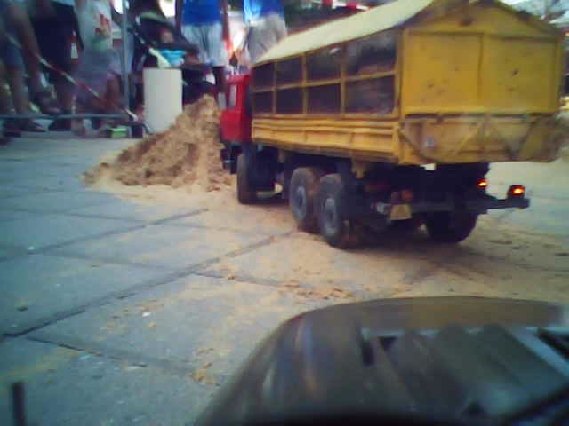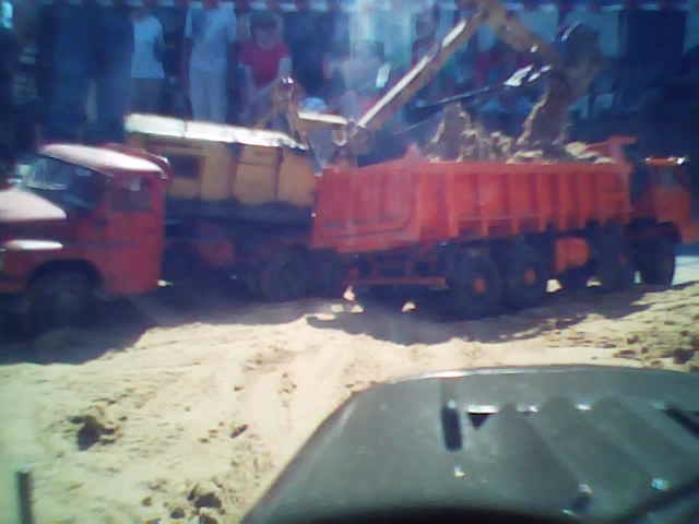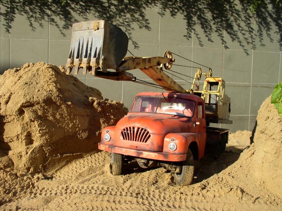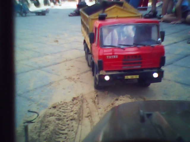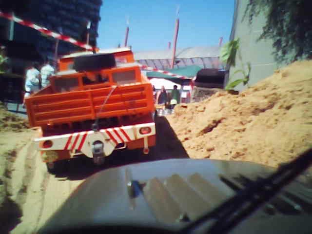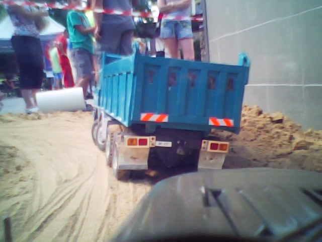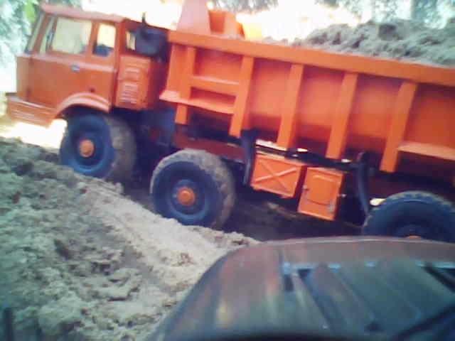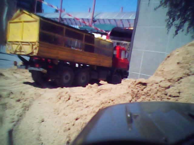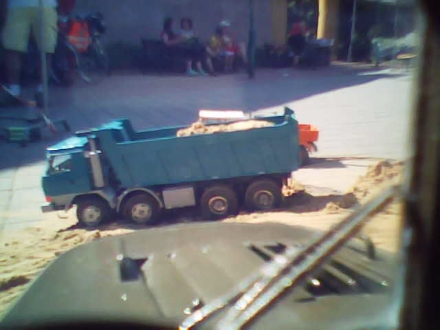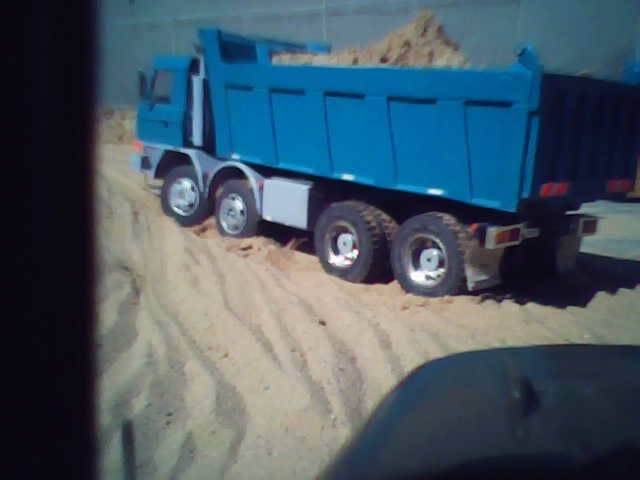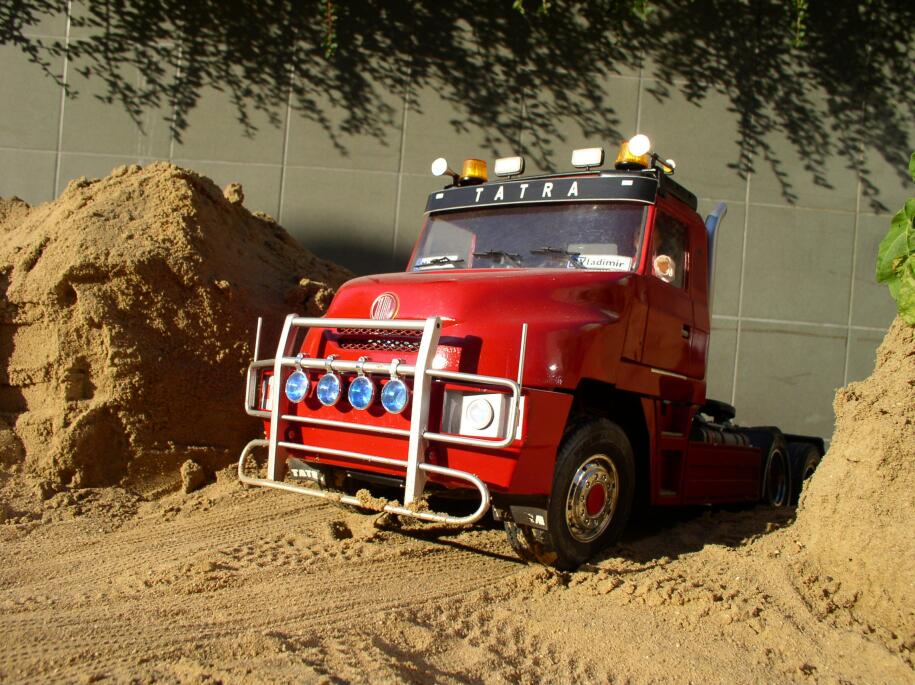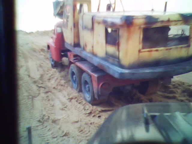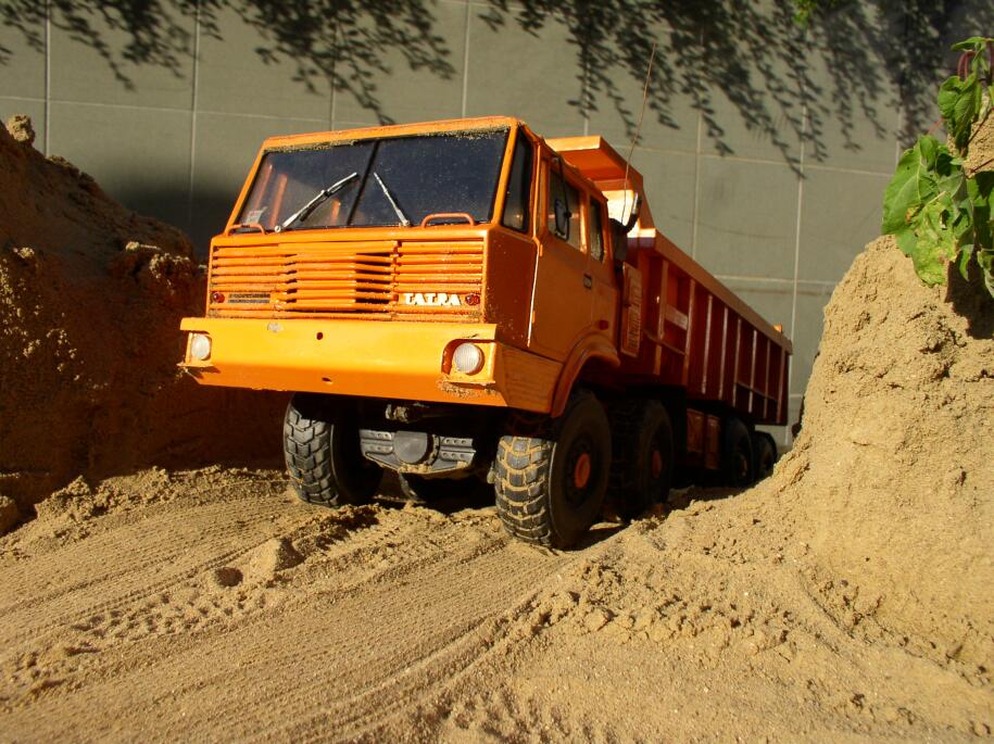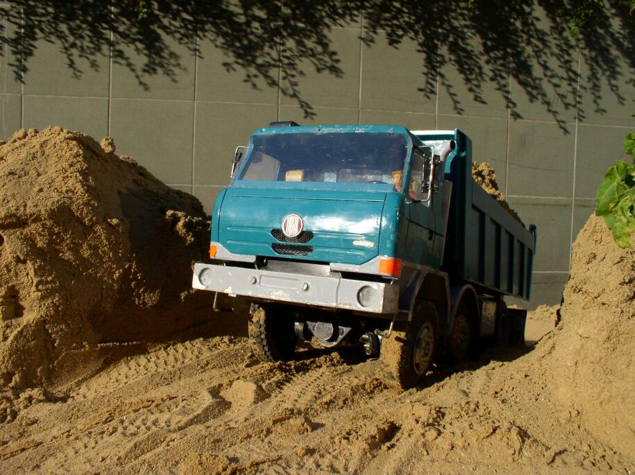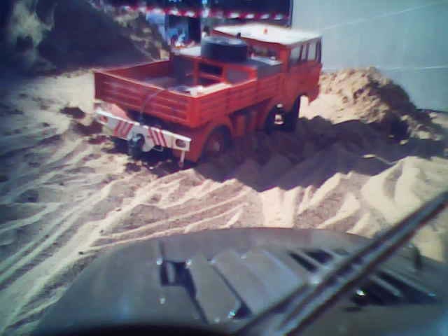 Martin s Vláďou trochu drbali Jirkovu T815 8x8 S1, že to je auto z Kopřivnice a ne z Brna, a že se to hned pozná na jízdních vlastnostech. Přičinou bylo to, že se Jirkovi nedařilo vyjet se svou plně naloženou Tatrou na písek. Tak jsem to vzal do ruky sám a ukázal jsem jim, že to není pravda, že teď už má tato Tatra náhodou velmi dobré jízdní vlastnosti a je schopná leccos vyjet i s nákladem.