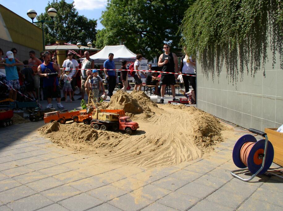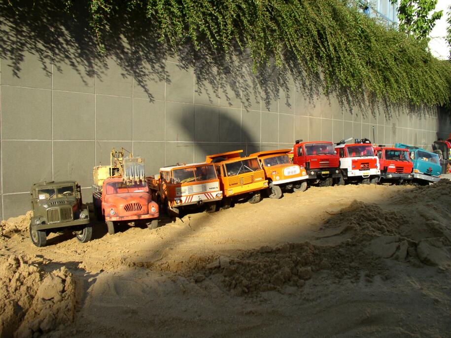 Fajné léto 2013, díl šestý – Tatramuzeum . Když to vezmu kolem a kolem, tak to byla akce vcelku zajímavá. Pořadatelé akce prostřednictvím Pepy pozvali výhradně majitele modelů Tater jako doprovodného programu. Součástí akce byla i muzika, byť trochu hlučná. Její styl mne však nijak neurážel, mohlo to být i horší ;) . Na chodníku přímo před muzeem byla připravena pečlivě zapáskovaná kopice velmi jemného písku. Písek sice během těch 4 hodin proschnul do hloubky, takže se velmi sypal, ale stále byla jízda v něm zvládnutelná. Z jedné strany byl vymezený prostor ohraničen vysokou stěnou s nevýrazným šedým obkladem, z níž na nás shora koukalo nějaké to zelené lupení.