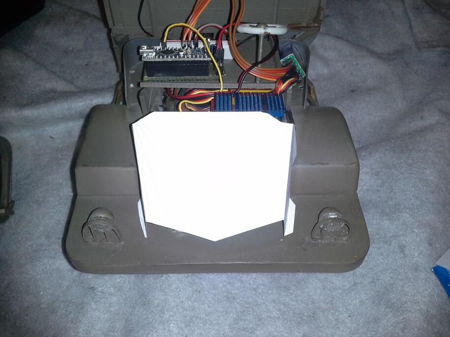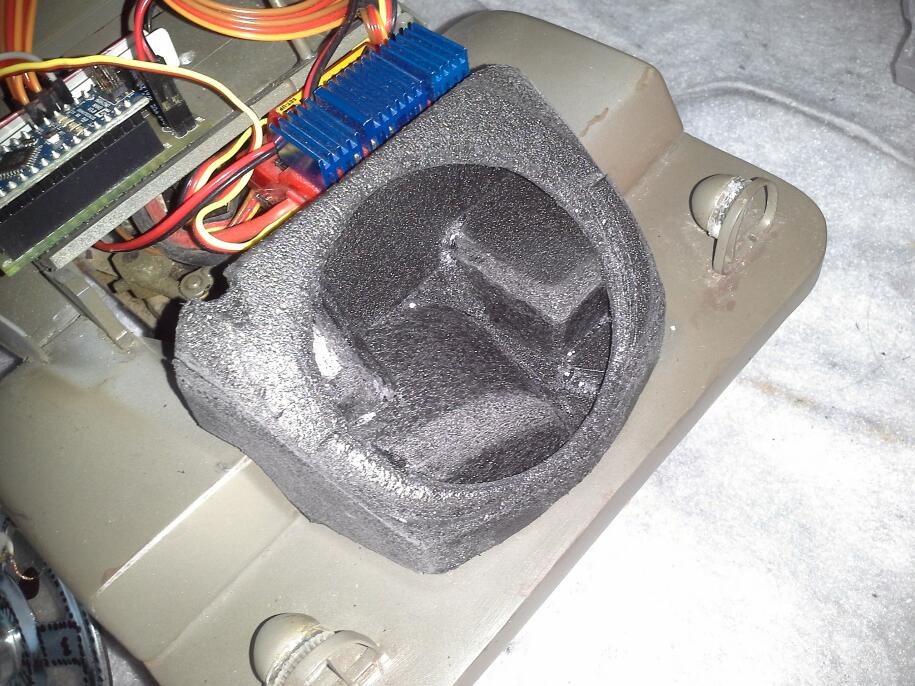 Dalším krokem realizace zvukového modulu pro T128 byla zástavba reproduktoru pod kapotu. Jak je výše naznačeno, prostorové uspořádání pod kapotou je jiné než u T130.