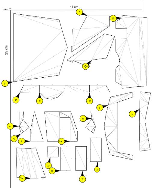 Jeho části jsem rozbalil do podoby dílů pro papírový model, který bylo třeba ověřit na autě. Největší problém bylo přemluvit tiskárnu, aby díly vytiskla se správnými rozměry. Nakonec se aspoň povedlo, že chyba byla 1mm na šířku papíru v každém rozměru. Kupodivu, papírový model v podstatě odpovídá prostorovému uspořádání Tatry.