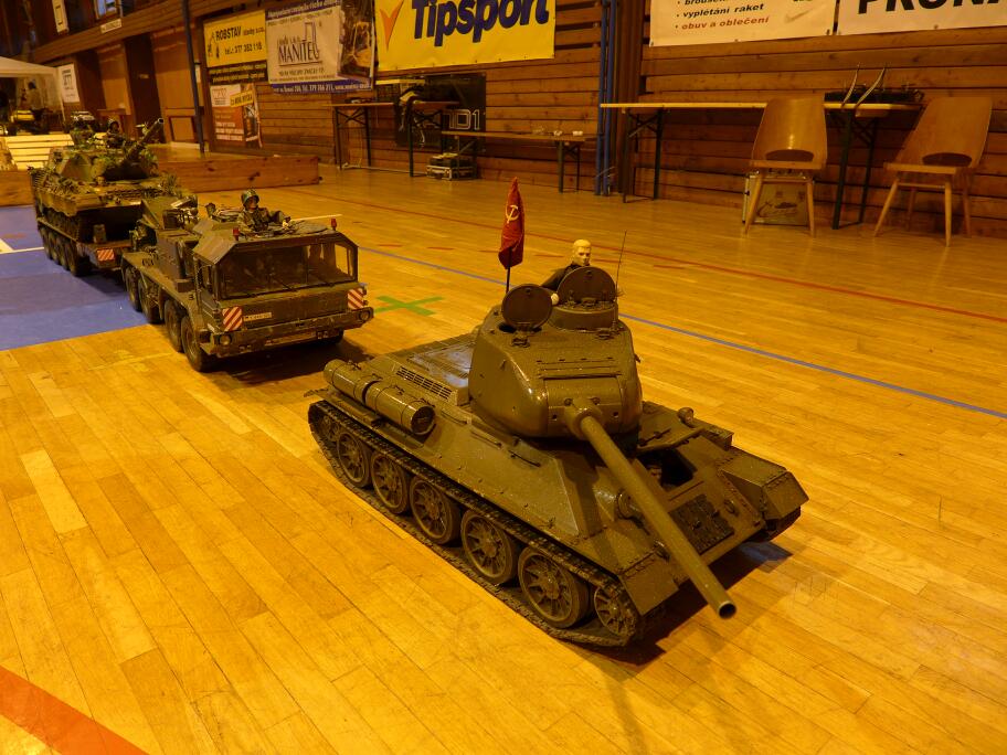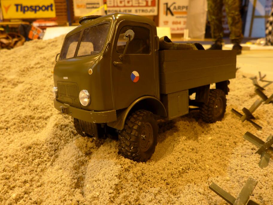 Hned vedle sekce pro kamiony byl lehký terén pro tanky a vojenskou techniku v měřítku 1:16. Vyskytovala se tu i T805. Měřítko bych odhadoval na 1:10, ale podvozek byl bohužel bez roury, potažmo redukcí v kolech.