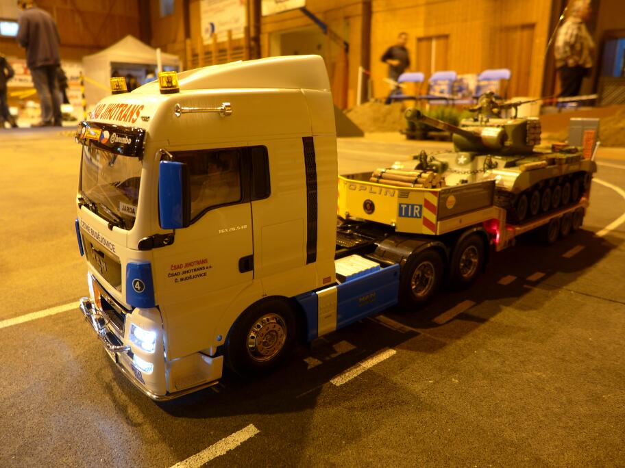 Rád bych se trochu víc zastavil u organizace celé akce. Už od začátku byla informovanost nadstandardní. Přibývající účastníky bylo možné sledovat online na stránkách pořadatelského klubu (vždy ovšem výhradně se souhlasem přihlášeného). Byť se zpočátku mělo jednat o výstavu kamionů a stavební techniky, postupně akce nabírala na velikosti. Povinná registrace modelů, jejich pilotů i doprovodu se ukázala jako velmi prozřetelná. Týden před akcí přišel požadavek na potvrzení účasti a seznam použitých kanálů. Zároveň dorazila detailní informace o rozmístění jednotlivých expozic v hale. Jen mi nebylo moc jasné, kam se to všechno do haly vejde, protože přihlášeno bylo cca. 60 lidí a přes 100 modelů.