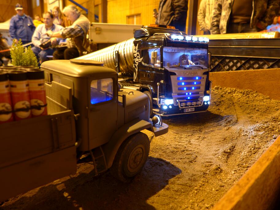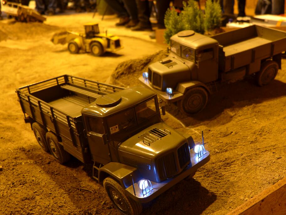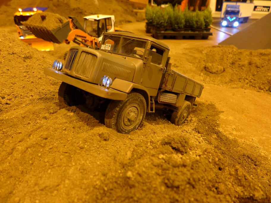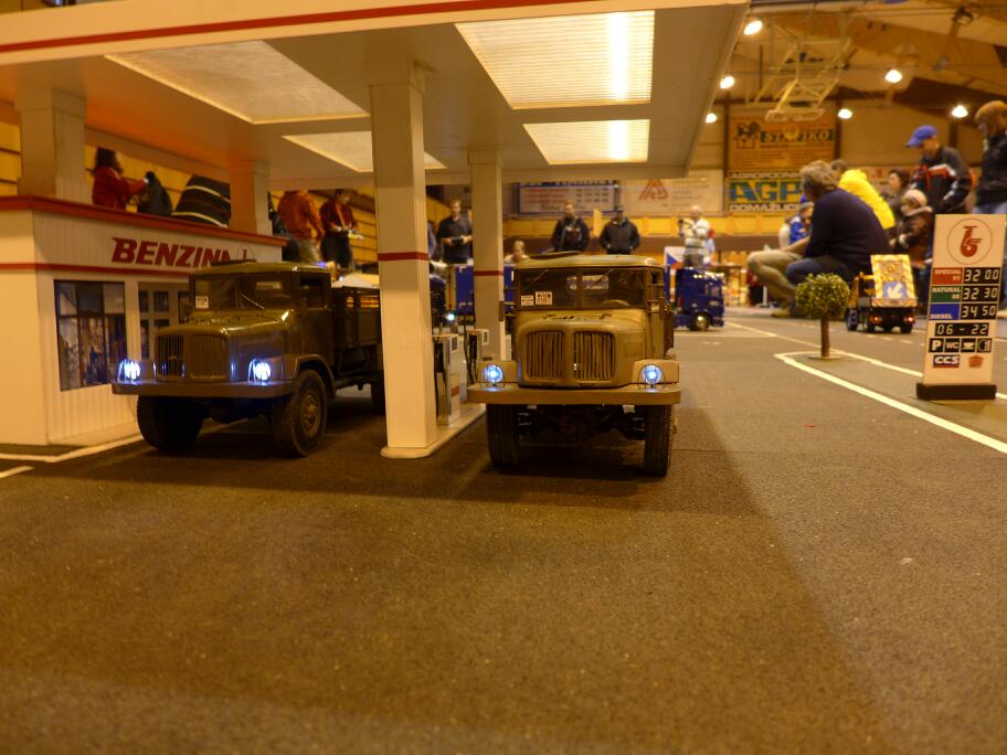 Jednotlivé expozice a měřítka modelů měly skutečně své oddělené sekce. My jsme se s Tatrami z bezpečnostních důvodů vyskytovali výhradně mezi kamiony a tanky. Na modelové silnice se postupně vydalo množství krásně pomalovaných kamionů všemožných značek a variant. V terénu nám pak konkurovala pouze plně pohonná silničářská Scania s radlicí.