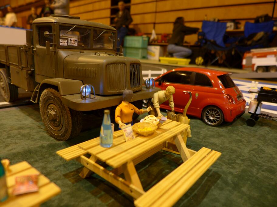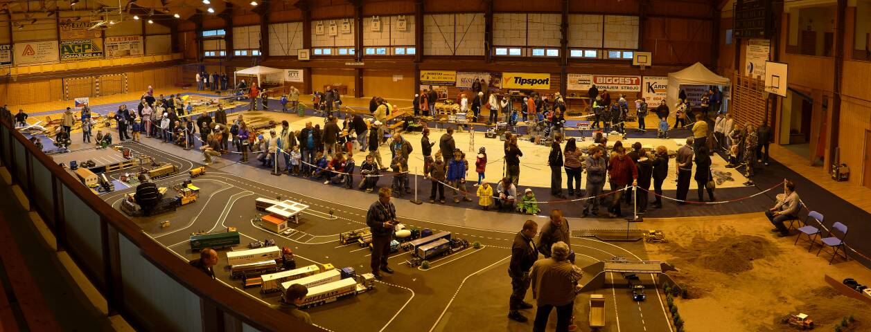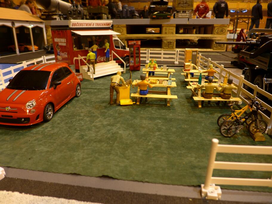 První pohledy do haly nás ubezpečily, že organizátoři neponechali nic náhodě, přestože na přípravu haly měli v podstatě jen právě uplynulou noc. Expozice byly v hale rozmístěny logicky s dostatkem prostoru pro modeláře, vystavované modely i diváky. Totéž by se dalo napsat o zajištění – elektrika pro nabíjení, dostatek místa pro uschování pomocného vybavení i odpočinek znavených řidičů. Po celou dobu fungovalo v rohu haly malé občerstvení.