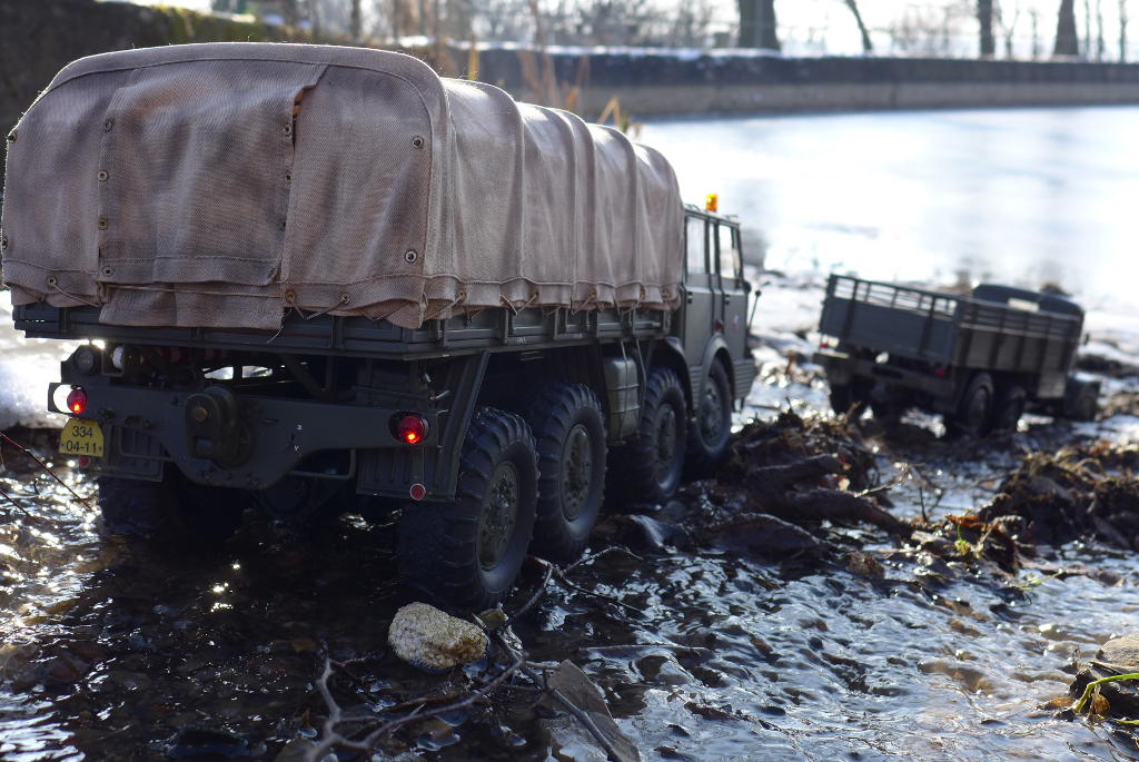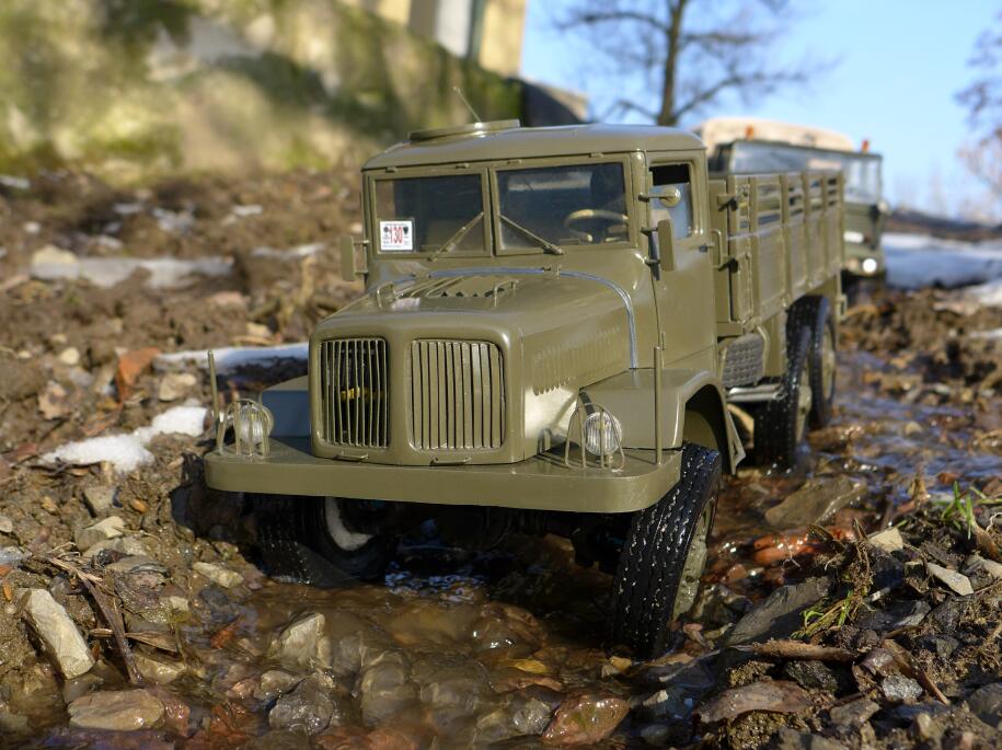 Obdržel jsem také dotaz, jak to bylo s rozměrem pneumatik stotřicítky – jestli je 11x22.5" na tamyiáckých pneu správně. Není, T130 měla nízkotlaké pneu rozměru 12x20", ale když model vznikal, tyto pneu Tamyia svým vnějším průměrem odpovídaly požadovanému rozměru 12x20". Průměr disků správně není a byl přizpůsoben právě dostupným pneumatikám.