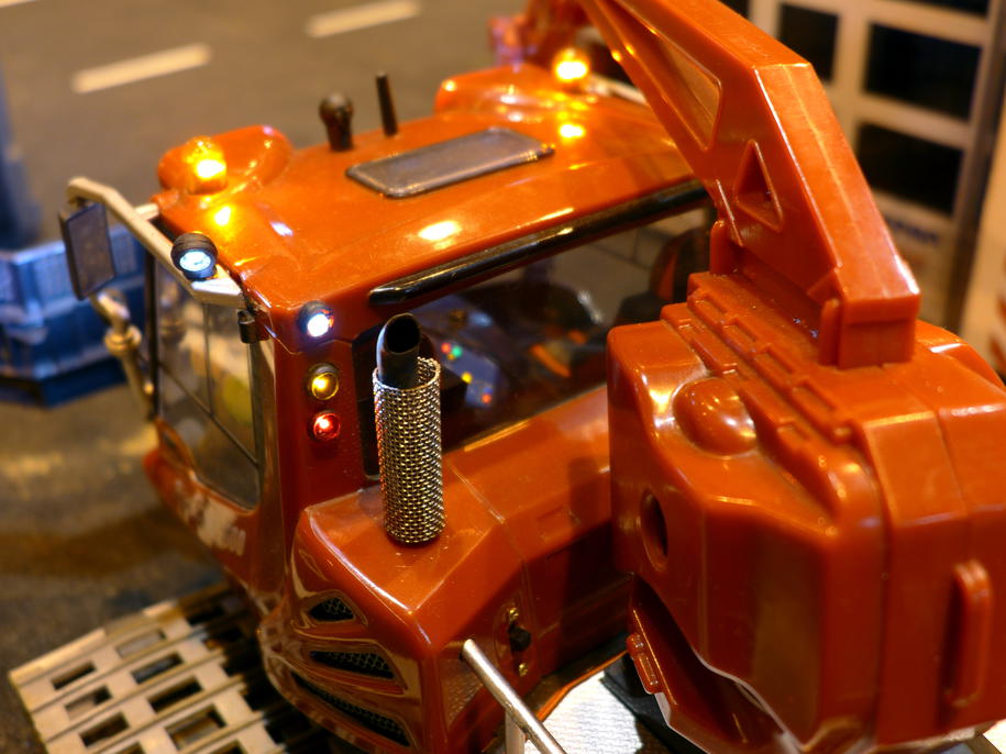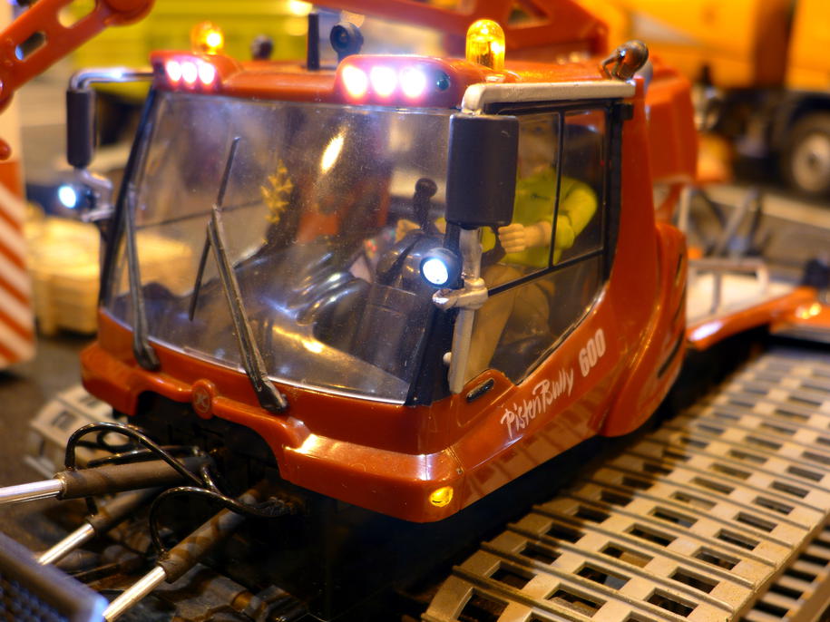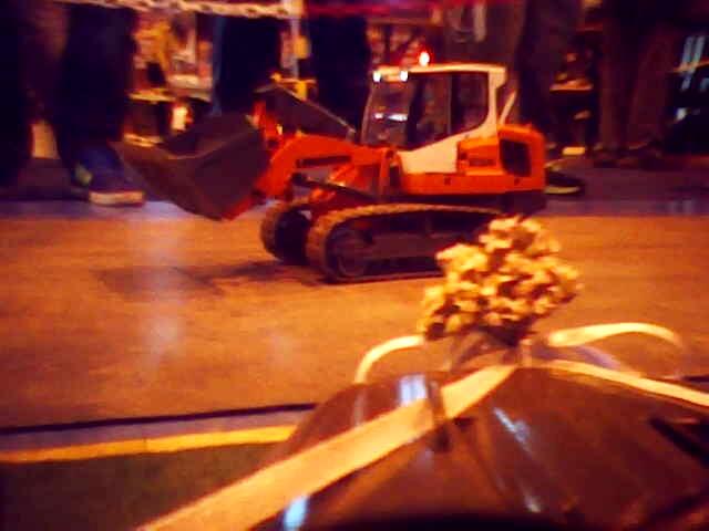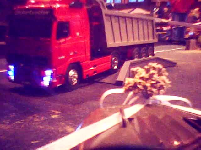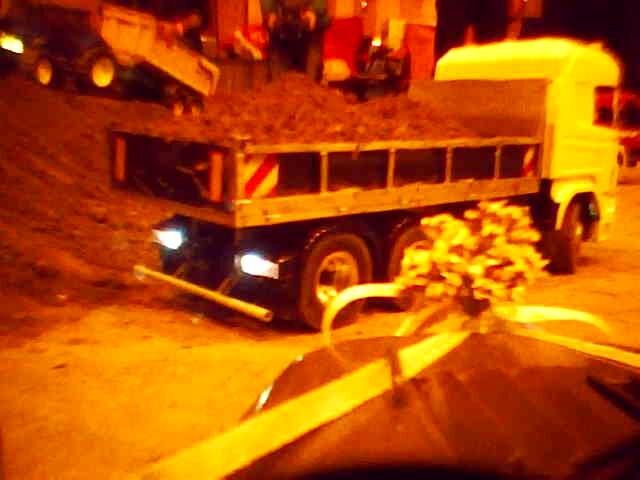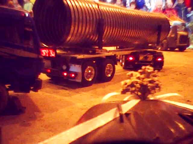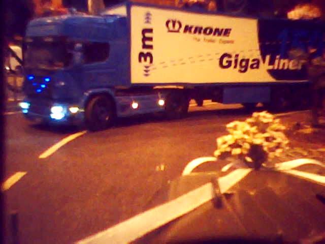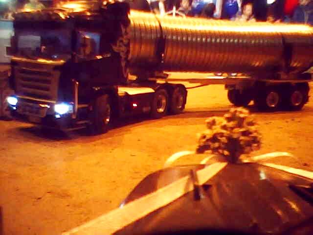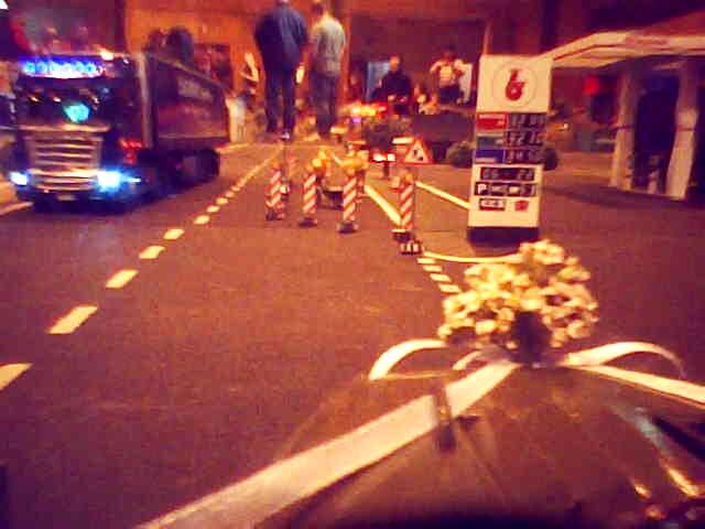 Během dne byly naplánovány dvě noční jízdy – na pár minut se vypnulo osvětlení v hale. V tomto režimu krásně vyniklo pestré osvětlení tahačů. Mnohým svítily i návěsy. Moc pěkně vypadal i bagr s osvětleným ramenem. Vlastně, zrovna když se chystal vjet na kopici, zhasla světla. Zkušeného bagristu to však nezaskočilo a bez zaváhání svůj stroj usadil do pracovní pozice a jal se plnit přistavenou sklápěčku.