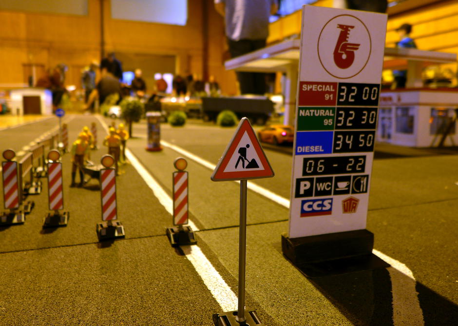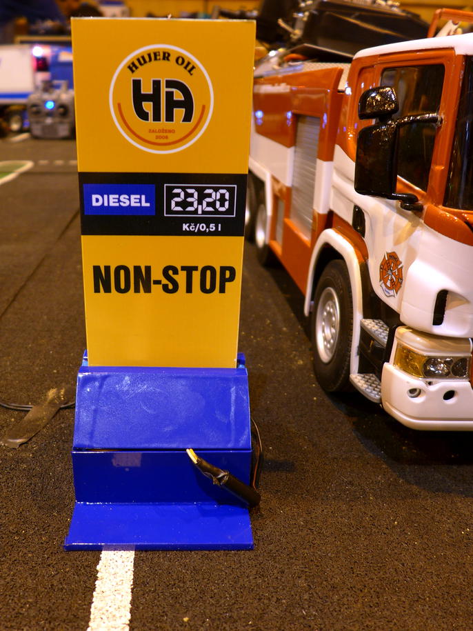 Sekce zemědělských strojů představila jednak množství traktorů a jiné techniky a také luxusní pumpu s funkčním počítadlem (ovšem také brutální cenou 23.20 za půl litru). Natočení záběrů na video se docela prodražilo, projeli jsme tudy s Tatrou snad sedmkrát. Ale je pravda, že tuto benzínku hojně využívala i ostatní vozidla, protože efekt počítadla a horních barevných LED byl nádherný.