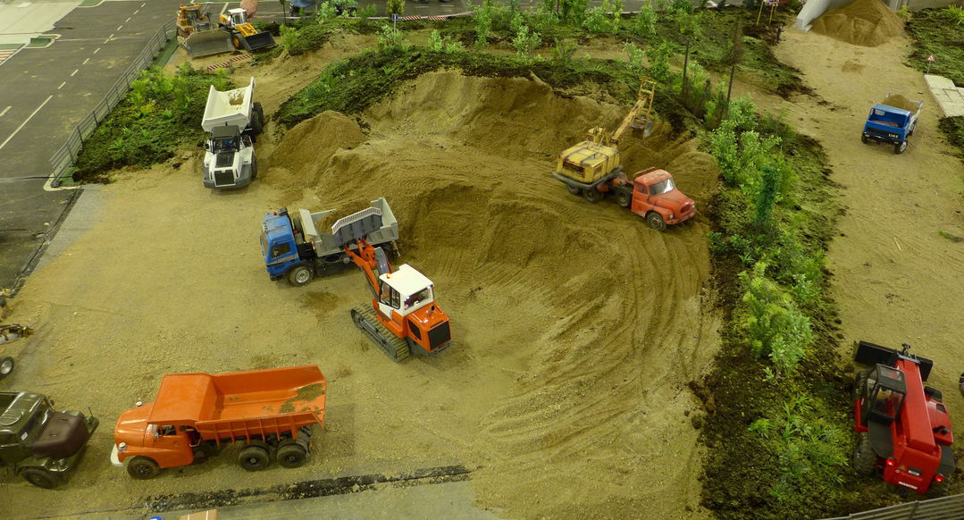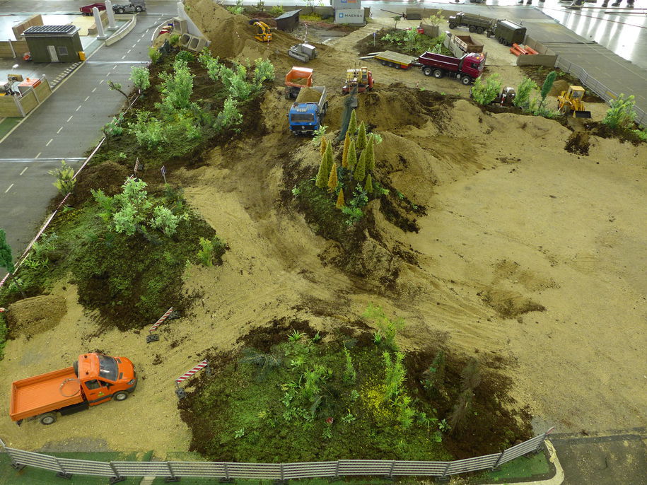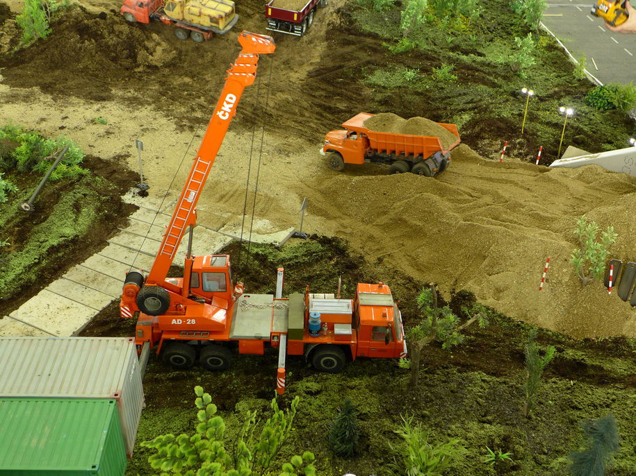 Terén byl rozdělen na pískovnu, terénní silnici, stavbu mostu a podpůrné sklady materiálu. Pískovna byla od rána v obležení nakladačů, bagrů a sklápěček. Písek se cíleně vozil na násep budoucího mostu. Ten se sice nepodařilo dokončit, přesto však bylo množství přepraveného materiálu úctyhodné. Písek převážela terénní vozidla Tatra 148 S1, Praga V3S a speciální sklápěč Terex a také silniční sklápěčky různých výrobců – Mercedes, Scania i Liazka s vlekem. A těm silničním to šlo až nerealisticky dobře – jak prohlásil jeden z jejich řidičů – tohle by ve skutečnosti žádná Scanie nedokázala.