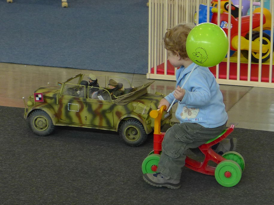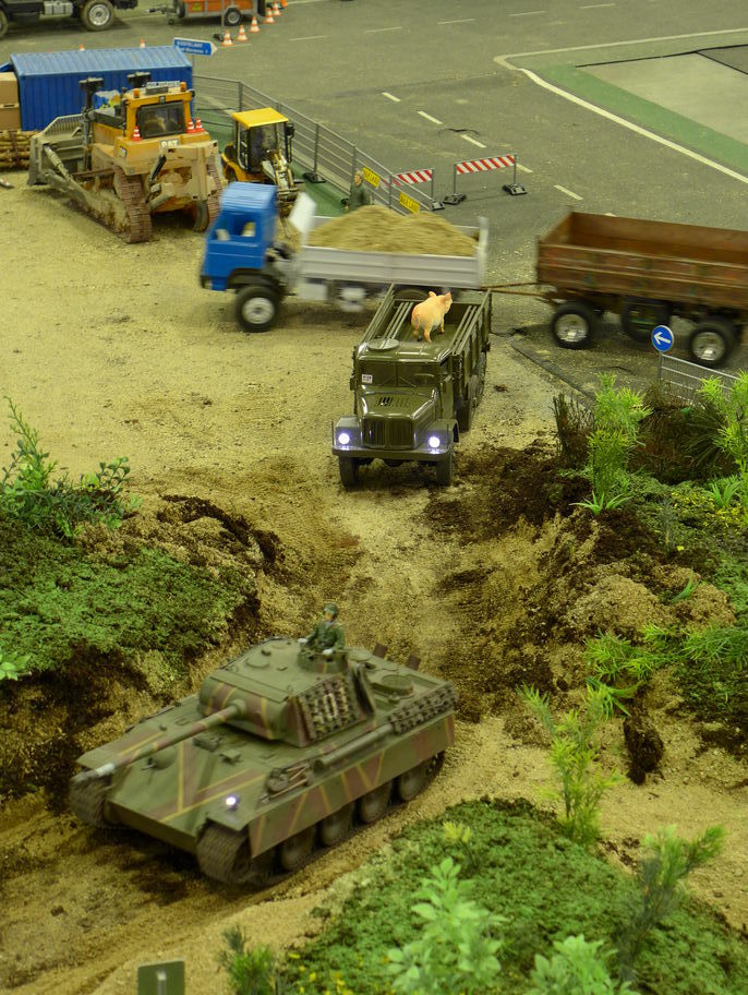 Letošní doprovodný program veletrhu "Pro dítě" byla skvělá modelářská akce. Byla tu spousta modelů různých druhů – nejen náklaďáků a tanků, byl tu také vlak, drtič kamení, jeřáby, nakladače atd. Za poslední roky to byla jedna z nejlepších akcí pro natáčení – pořád se něco dělo, nebyly žádné prostoje. Navíc ve vzduchu bylo cítit jaro a už zase poletovala všeliká vrtulová zvěř.