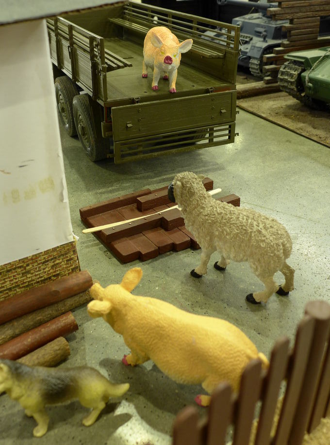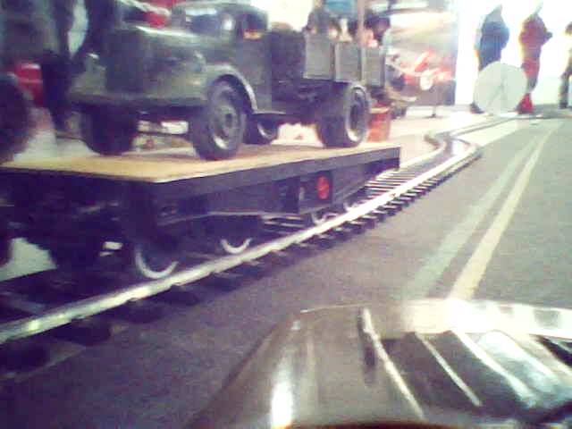 Modelový vláček vozil v sobotu především tanky. Neodolal jsem a svezl jsem se s Tatrou. Záměrně jsem nechal nastartovaný motor, abych získal neobvyklé záběry přímo z plošiny vagónu jedoucího vlaku. Na konci dráhy jsem pak demonstrativně sjel dolů, jako kdyby snad ani mezi vagóny nebyly mezery. Tatra to prostě neřešila. Stačilo se předními koly trefit na nárazníky, přejet na sousední vagón a pak už to bylo v pohodě. Kyvné polonápravy si s tím poradily.