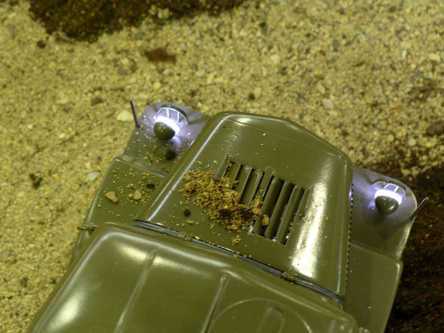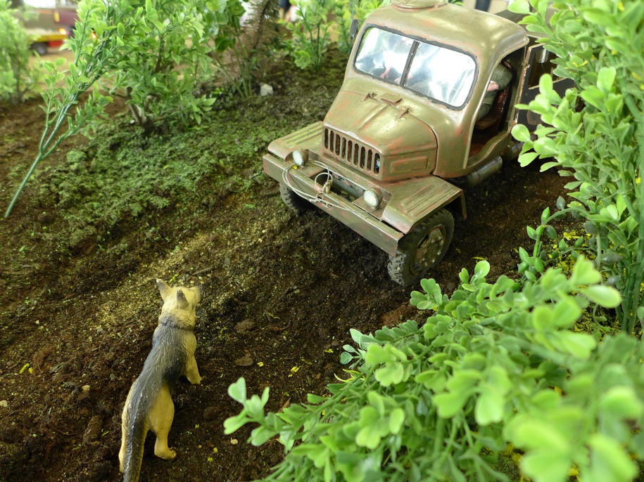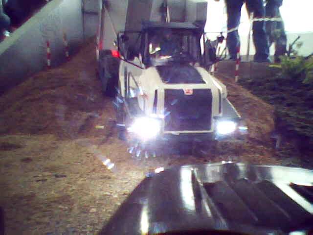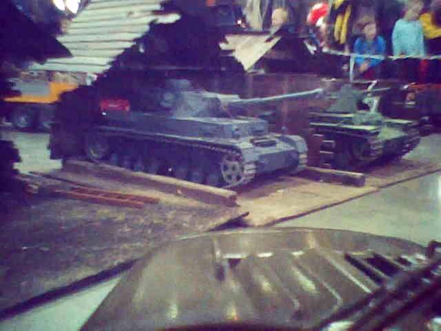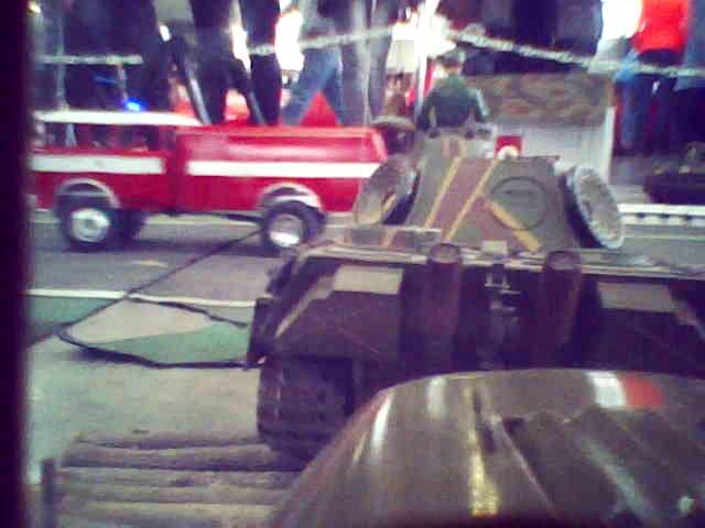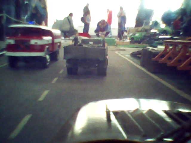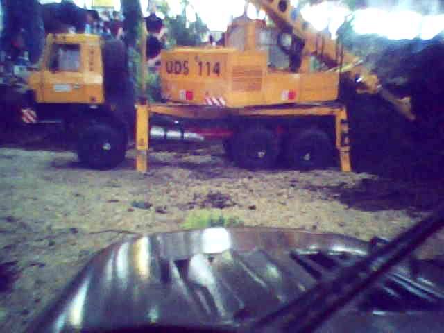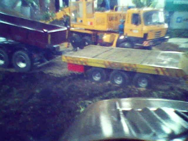 T141 hned v sobotu ráno trestuhodně uvízla na rouře, což se stalo základem pro neobvyklou vyprošťovací akci (uvidíte na videu). Ulovil jsem projíždějící vyprošťovací tank s navijákem a požádal jeho pilota, zda by nám nechtěl pomoci. Ukázalo se, že Tatra je pro tank hodně těžké břímě. To bylo dáno i měřítkem tanku 1:16, zatímco Tatra je 1:14. Sovětský stroj se ale "postavil na zadní" a s vypětím všech svých sil dokázal Tatru vyprostit. V neděli předvedl řidič s Pragou V3S v podstatě totéž, neboť mi chtěl dokázat, že tento terénní hrb zastaví jen mou Tatru. V3S vyprostil až buldozer :) .