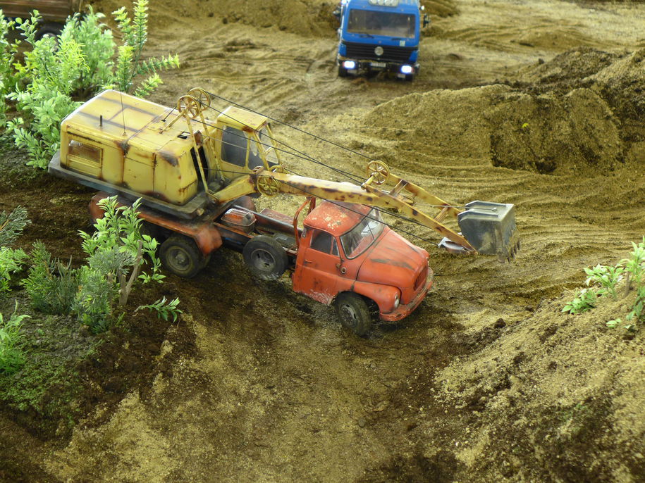 Tatru 130 postupně napadly dva bagry :) . V obou případech jsem si naběhl sám. Nejdřív si jen tak jedu okolo UDS, když mi najednou nad kapotou přistála lžíce plná písku. Zastavila se centimetr před čelním sklem. Tuto událost lze vidět v přímém přenosu na videu. Písek jsem s kapoty sfouknul, ale část se dostala dovnitř na reproduktor. Večer musela kabina dolů a postupně se mi podařilo písek vysypat ven.