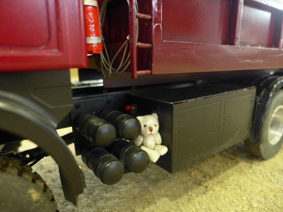 Druhý případ se stal v neděli. Projížděl jsem příliš blízko laňáku a nějak se povolilo lano :) Lžíce se mi zapíchla přímo do kabiny. Naštěstí se nic nestalo, v modelovém provedení je lžíce lehká. Ve skutečnosti by byly následky fatální, v lepším případě by se měnila pouze kabina. Dopadlo by to podobně, jako když si kdysi jeden nejmenovaný bagrista omylem "vyndal" lžící motor na zcela nové T138 :) .