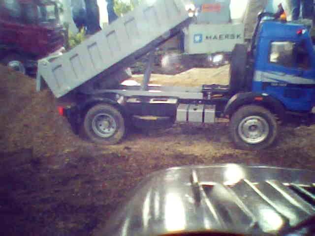 Michal si namontoval pohon přední nápravy na svůj Mercedes (po letech :) ). To se stalo v noci ze soboty na neděli. V neděli to už bylo z hlediska průchodivosti úplně jiné auto. Bez problémů dokázal naložený vyjet až na vrchol pískového náspu a tam sklopit náklad. Ještě v sobotu končil na prvním metru písku. Michal si to náležitě užíval a myslím, že terény na dalších akcích budou daleko náročnější :) . Jen jestli bych mohl poprosit trochu více manévrovacího prostoru, přeci jen T130 moc nezatáčí, tak ať jsou rádiusy zatáček větší.