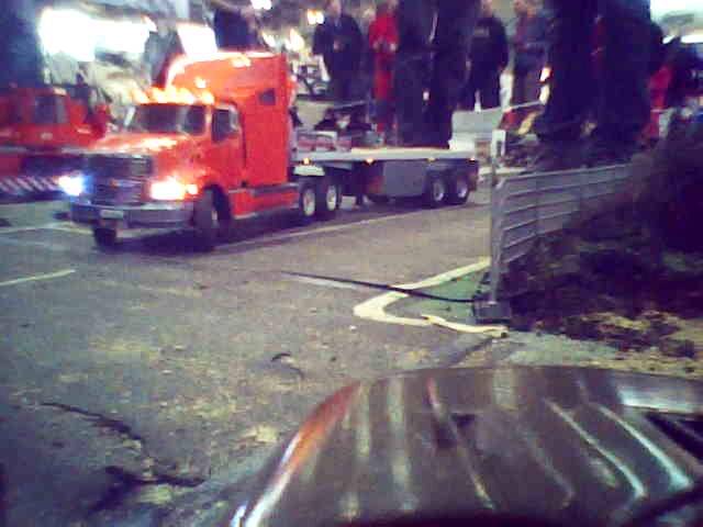 Akci jsme ukončili v neděli po poledni. Jednak došel veškerý volný filmový materiál (což se stává výjimečně), foťák začal odmítat zápis na kartu, nádrž Tatry suchá jako Martini a hlavně začalo být na place nebezpečno. Zrovna když jsem se snažil varovat Vláďu, aby si dal svou osamoceně stojící T163 s návěsem do bezpečí (udělal bych to dříve sám, ale nedokázal jsem naloženou soupravu bezpečně zvednout, abych tam omylem něco neulomil), v těsné blízkosti okolo ní proletělo terénní Mitsubishi. Jeho nezkušený pilot rychlý stroj evidentně nezvládal. Usoudil jsem, že to byla poslední kapka a bude lepší takticky ustoupit.