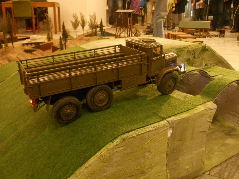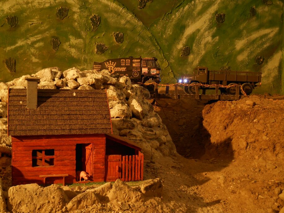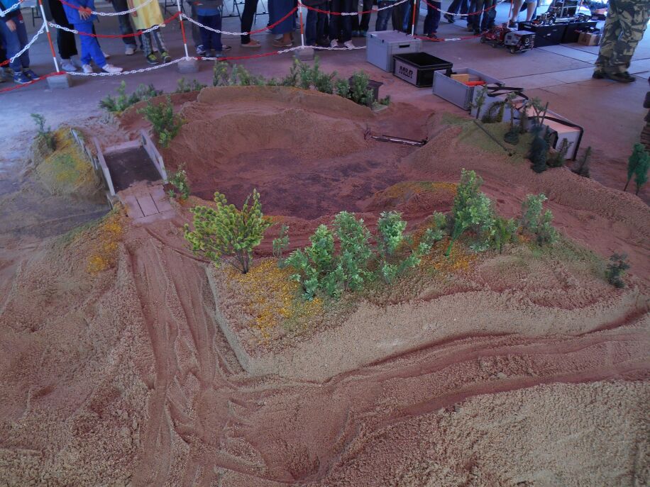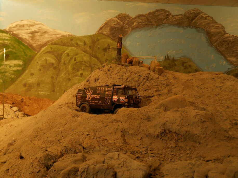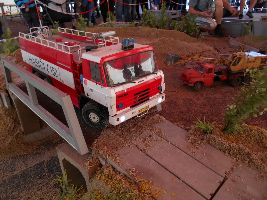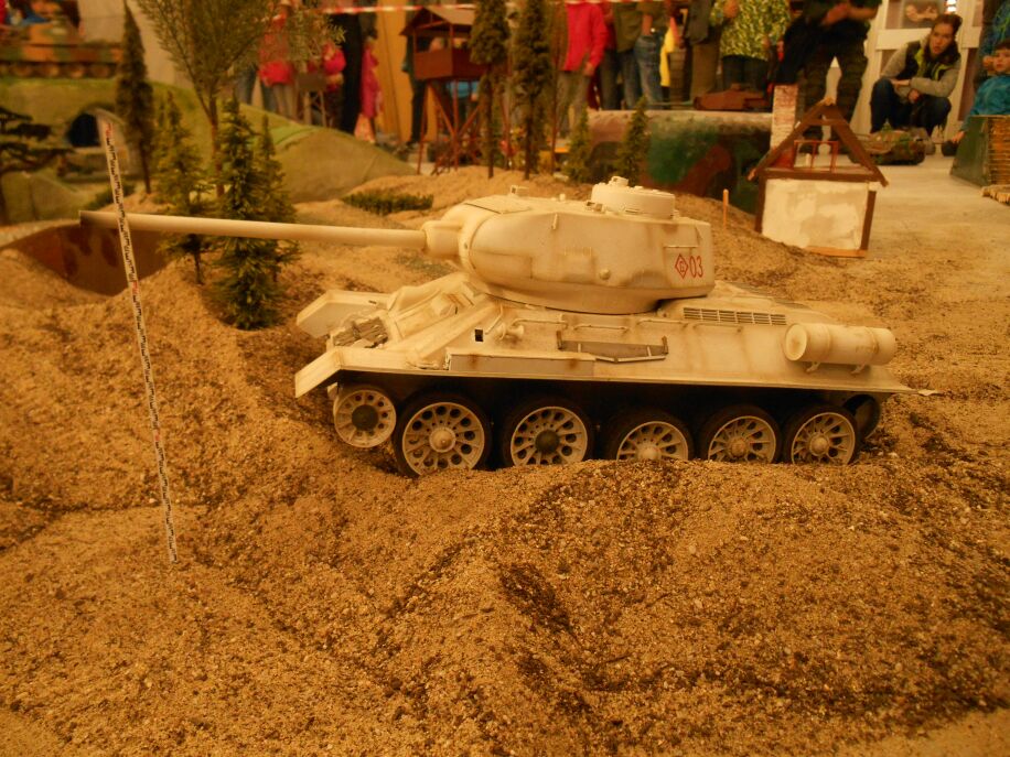 Sobotní dopoledne jsme strávili ve vstupních prostorách kulturního domu – u tankistů. Měli tu krásné modelové terény a rekvizity. Tatra se dokázala vyškrábat na téměř 100% svah. Dál jsem to ale neriskoval, neměl jsem v úmyslu opět vařit utržené stupačky na zadním nárazníku. Některé tanky bojovaly především s rušením signálu. Jeden se dokonce opřel do mojí sajtny, naštěstí se nic nestalo.