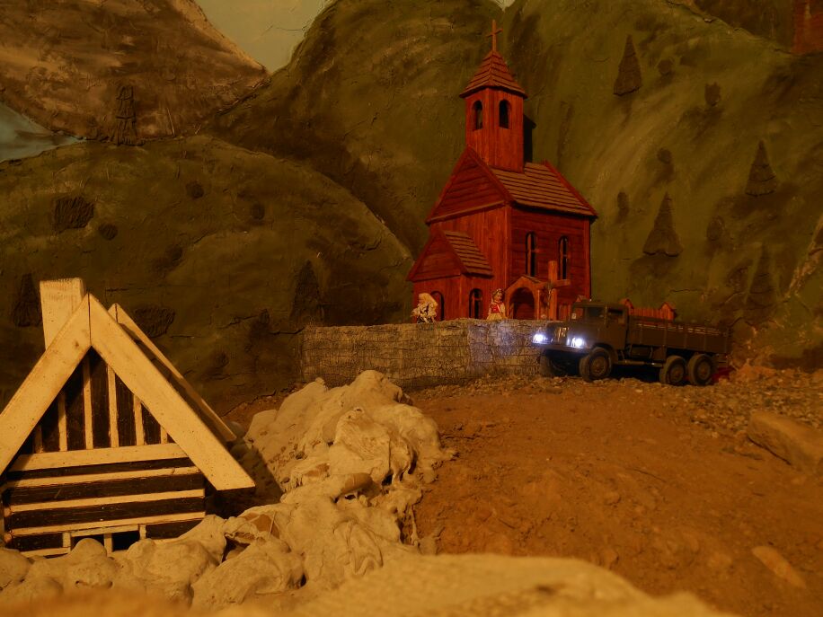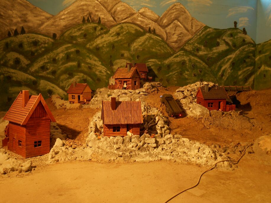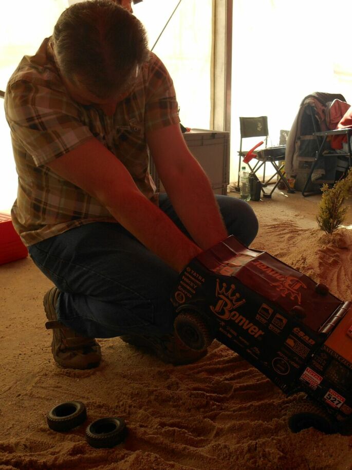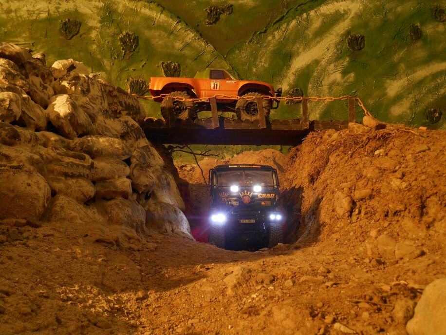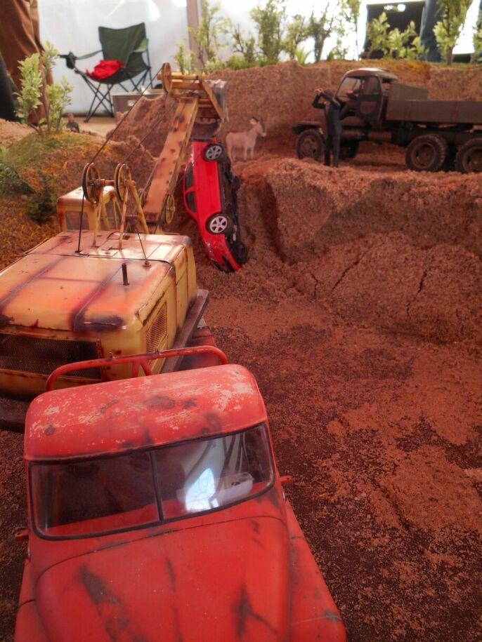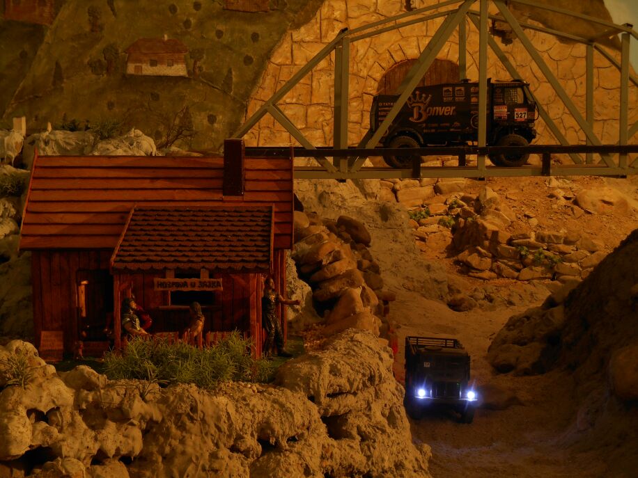 Sobotní dopoledne jsme strávili ve vstupních prostorách kulturního domu – u tankistů. Měli tu krásné modelové terény a rekvizity. Tatra se dokázala vyškrábat na téměř 100% svah. Dál jsem to ale neriskoval, neměl jsem v úmyslu opět vařit utržené stupačky na zadním nárazníku. Některé tanky bojovaly především s rušením signálu. Jeden se dokonce opřel do mojí sajtny, naštěstí se nic nestalo.