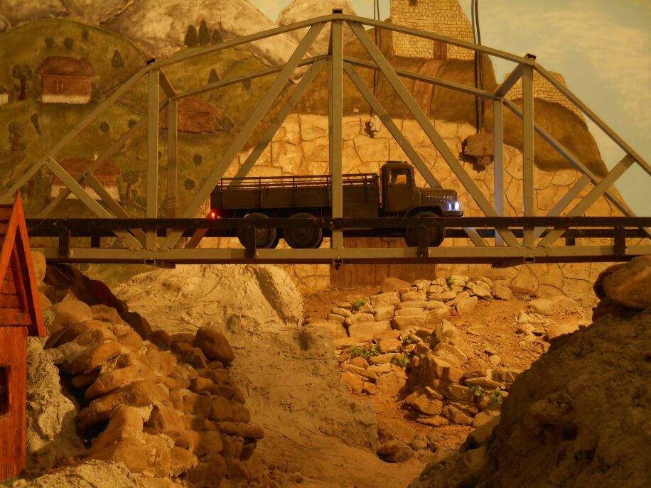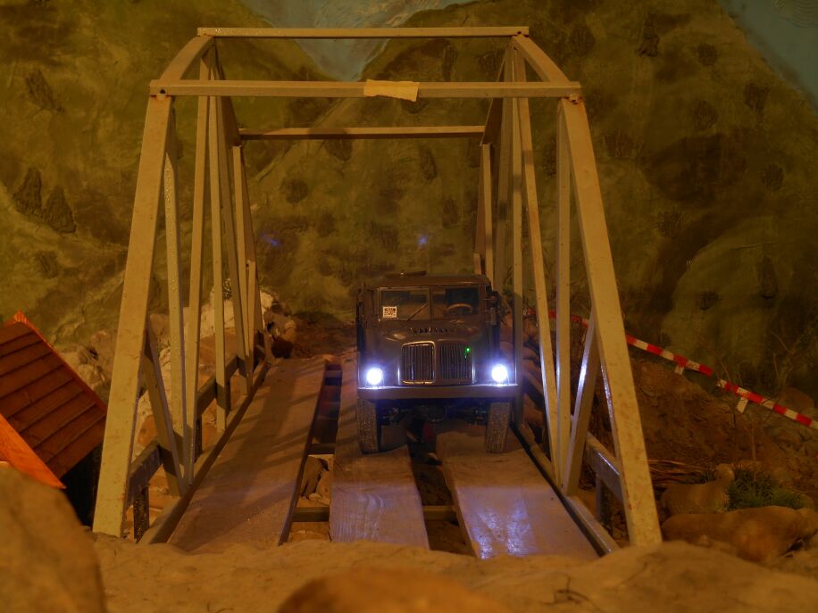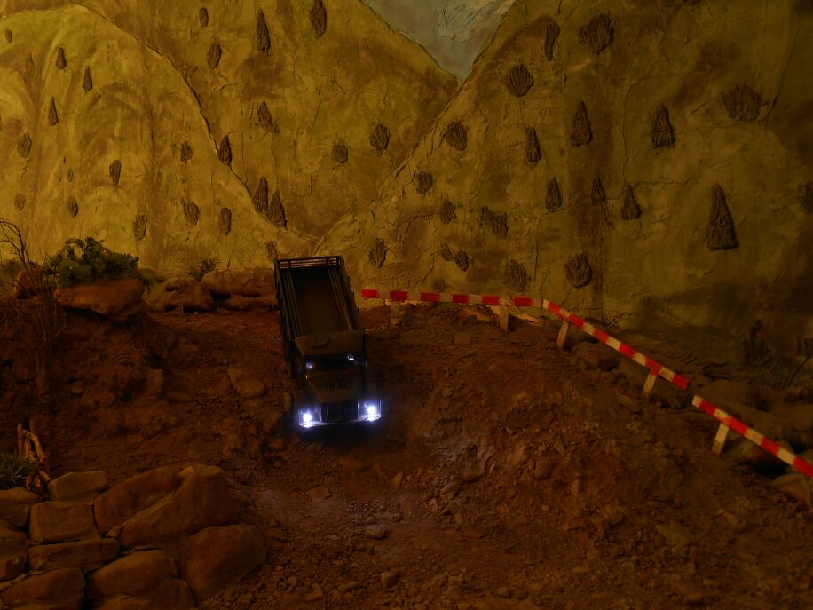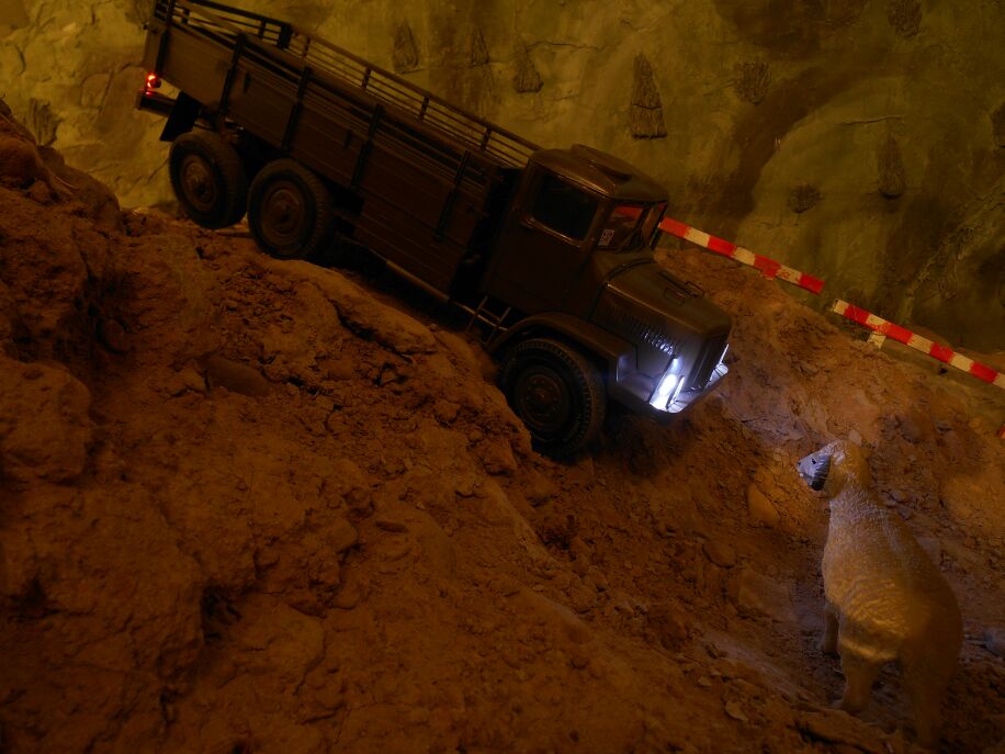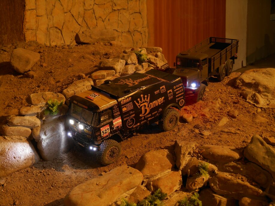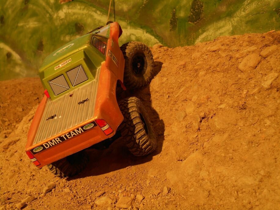 O T130 už mám strach, stále jsme neopravili převody a přední diferenciál už má své nejlepší kilometry za sebou. K tomu vůle v řízení (jak na skutečném autě) a pneumatiky tvrdé jak pěst dělnické třídy :) . T130 nicméně přesto dokázala své kvality. Stoupavost má model vyšší, než měl skutečný prototyp. Stoprocentní stoupání by skutečná sto-třicítka motoricky nezvládla. Ostatně to uvidíte na videu, v jakém terénu se dokáže pohybovat Tatra na silničních gumách. Prudké sjezdy na malou jedničku taky zvládla se ctí. Brzdy jsou stále ve skvělé kondici, což se ověřilo v okamžiku, kdy při jednom sjezdu náhle vstoupil do dráhy zatoulaný beránek.