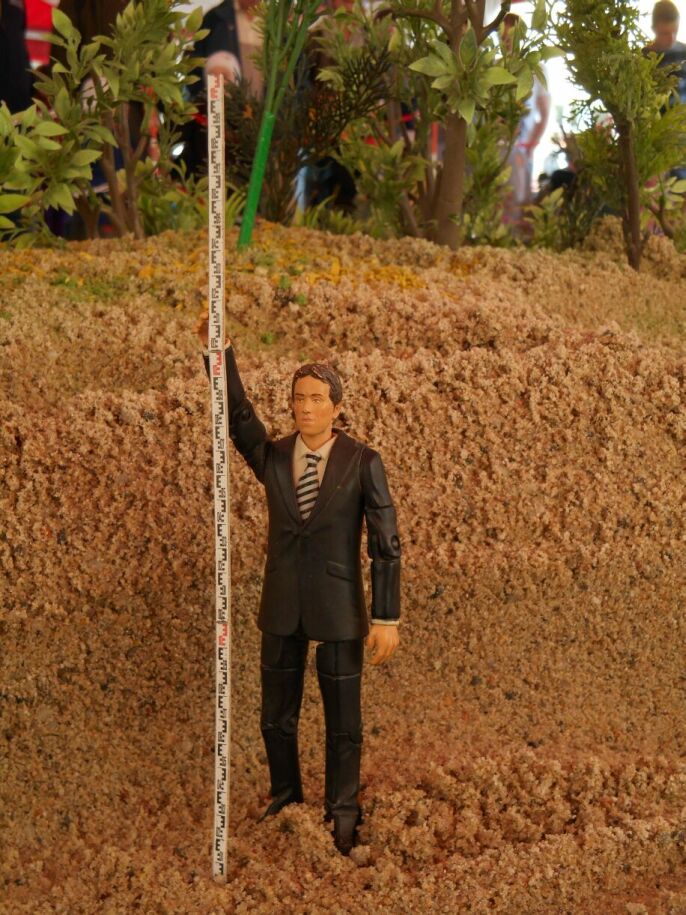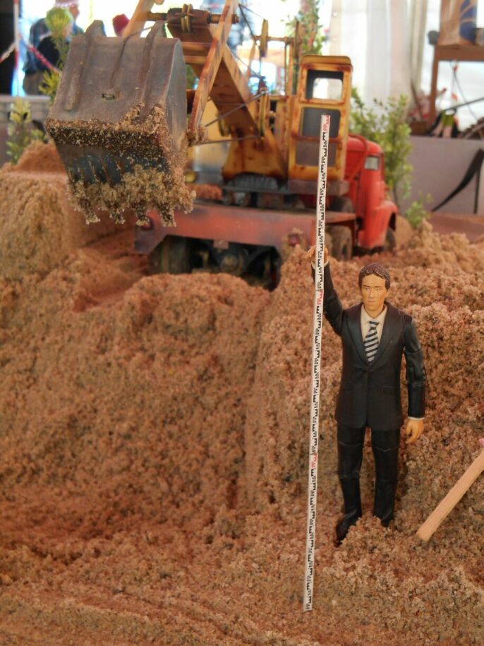 Stavbu terénu a všechny zemní práce na místě kontroloval pan geometr s nivelační latí...