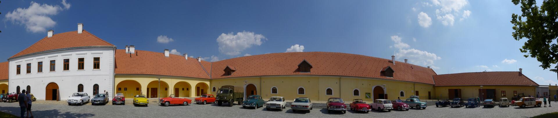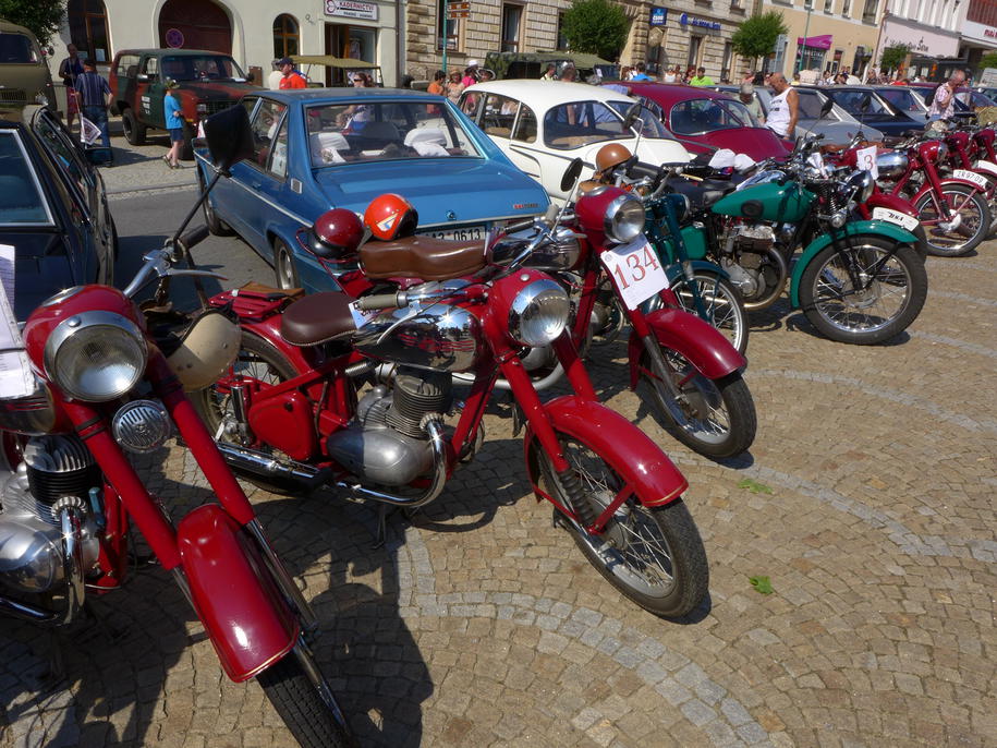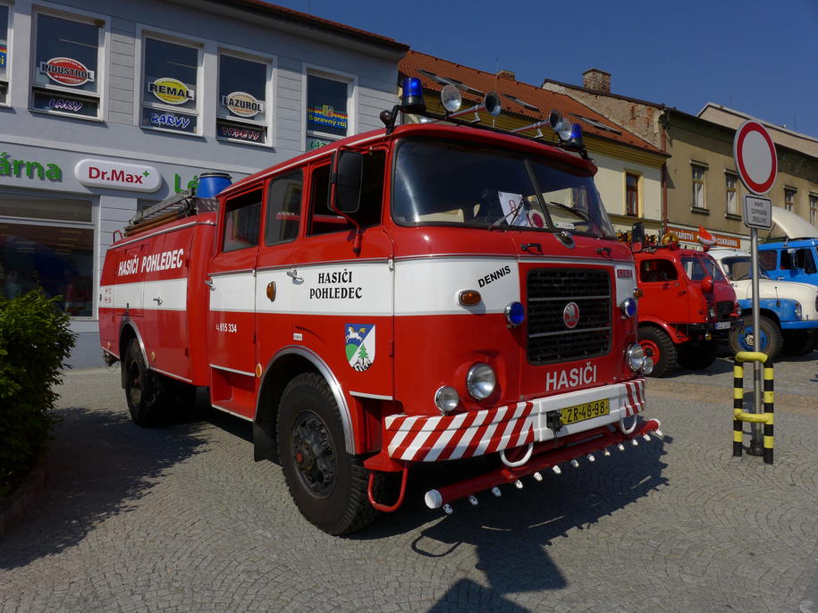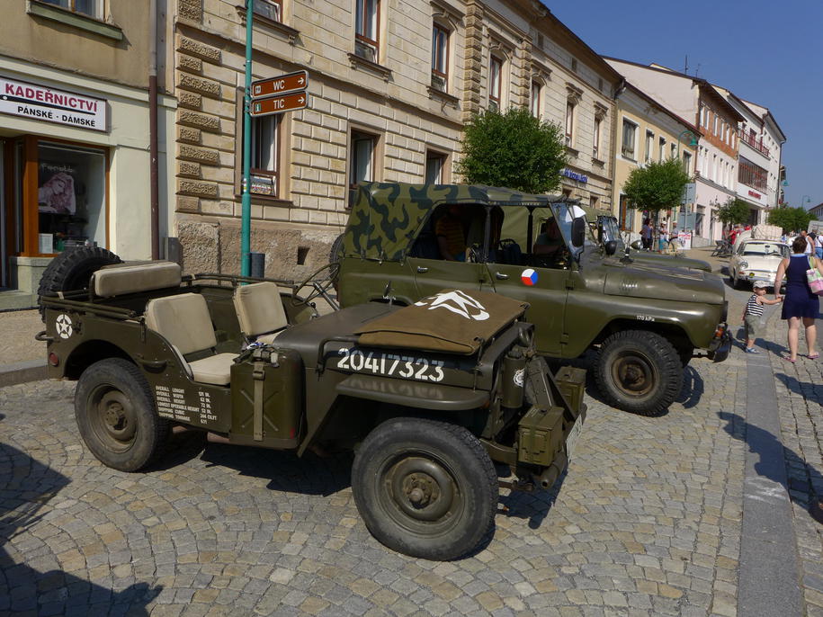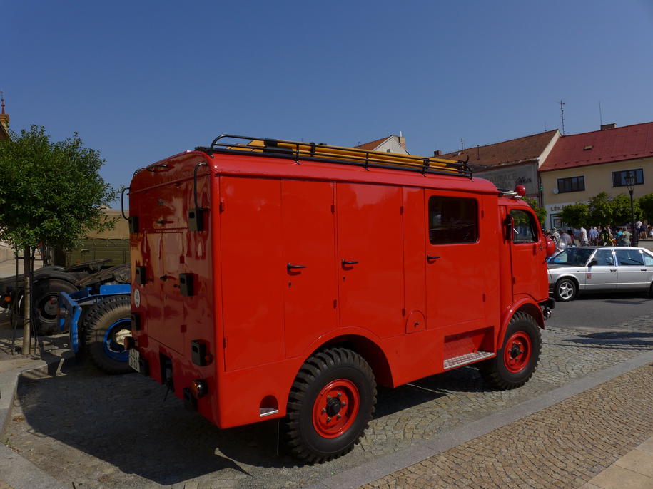 Osvědčené rozmístění vozidel podle stáří, značky a kategorie se oproti minulým ročníkům nezměnilo. Když to vezmu od kostela směrem vzhůru – traktory mazácky parkovaly částečně na chodníku. Nájezd na obrubník nepředstavoval pro zemědělské stroje žádný problém. Byl tu i "Mates" hasičák – a to nejen staticky na výstavě, nýbrž také pravidelně projížděl náměstí a kropením osvěžoval vzduch. Vzpomněl jsem si na Jirku a ze zvyku jsem si prohlédl přední poháněné Trilexy ;) . Vedle Matesa stála jasně červená kačenka, Tatra 138 NT 4x4, návěsový tahač LIAZ novějšího provedení s odpružením zadní nápravy vzduchovými vaky původem z Divadla na Vinohradech a dále vojenské automobily.