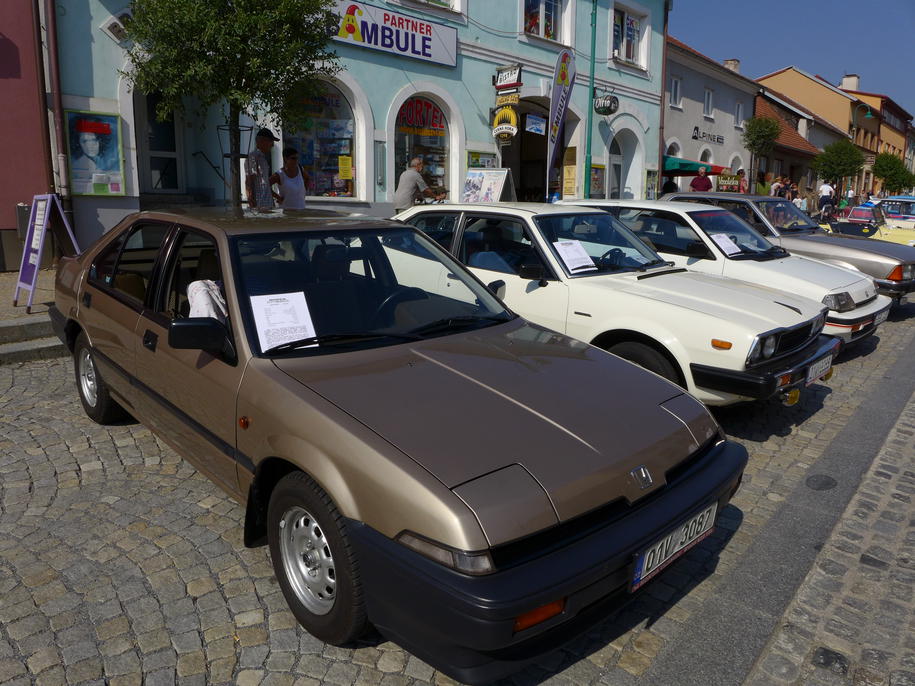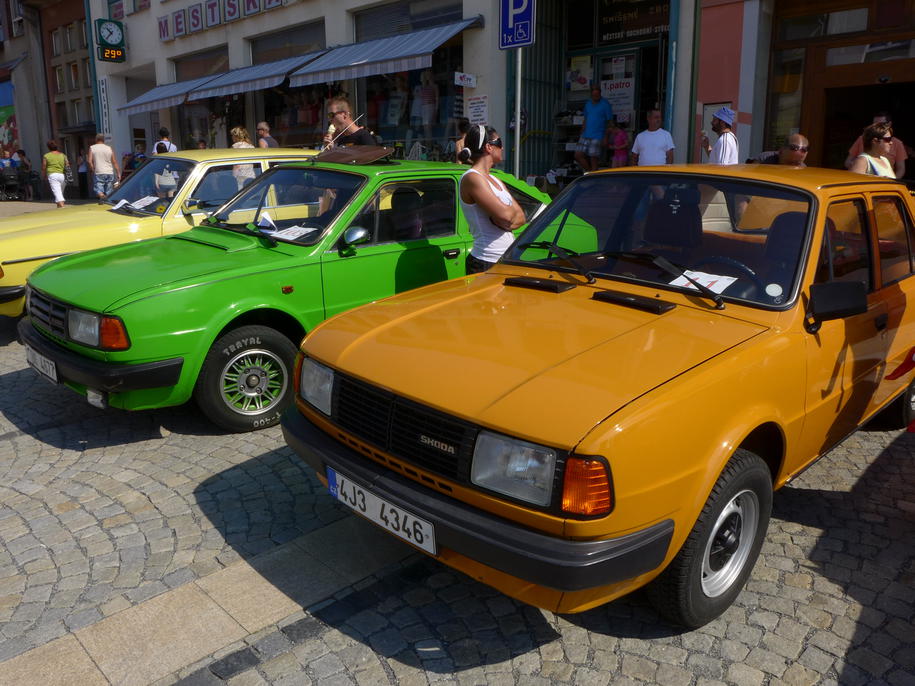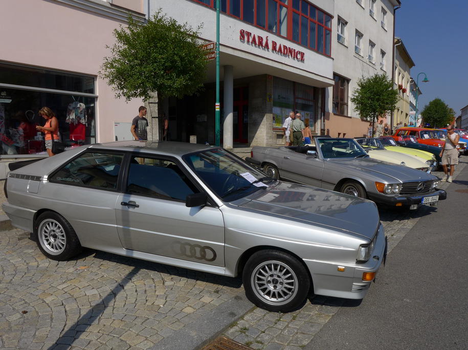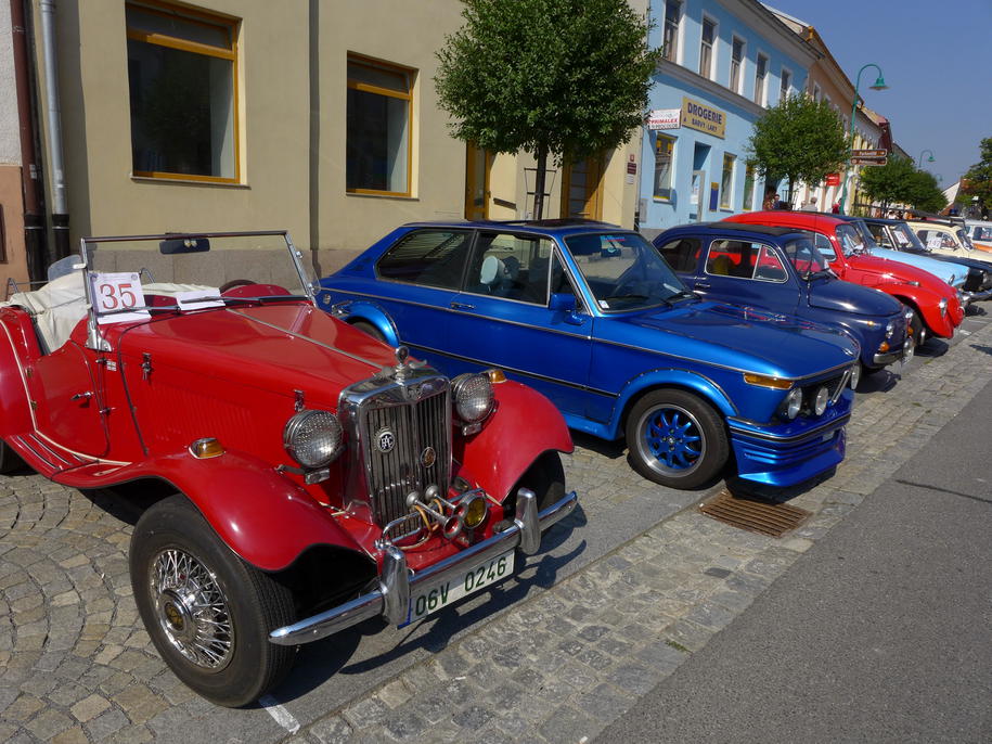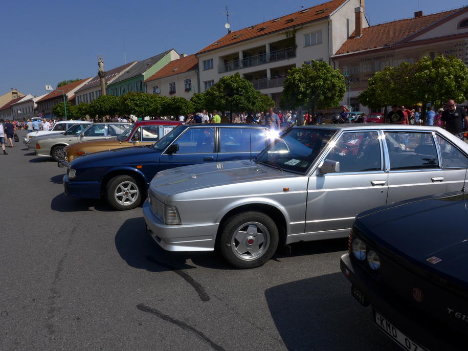 V horní části náměstí postupně parkovala nejmladší vozidla – tzv. youngtimers. Ale i mezi nimi byly zajímavé a u nás ne tak často vídané kousky – třeba Audi Quattro, soutěžní Lancia Delta HF Integrale, Fiat 500 ve variantě Combi, známé Dune Buggy, VW Caravelle, spousta MG a dokonce i Jaguar Type-E. U některých exemplářů se mi ani nechce věřit, že už jde o veterány, vždyť mnoho z nich do nedávné doby každý den brázdilo naše silnice.