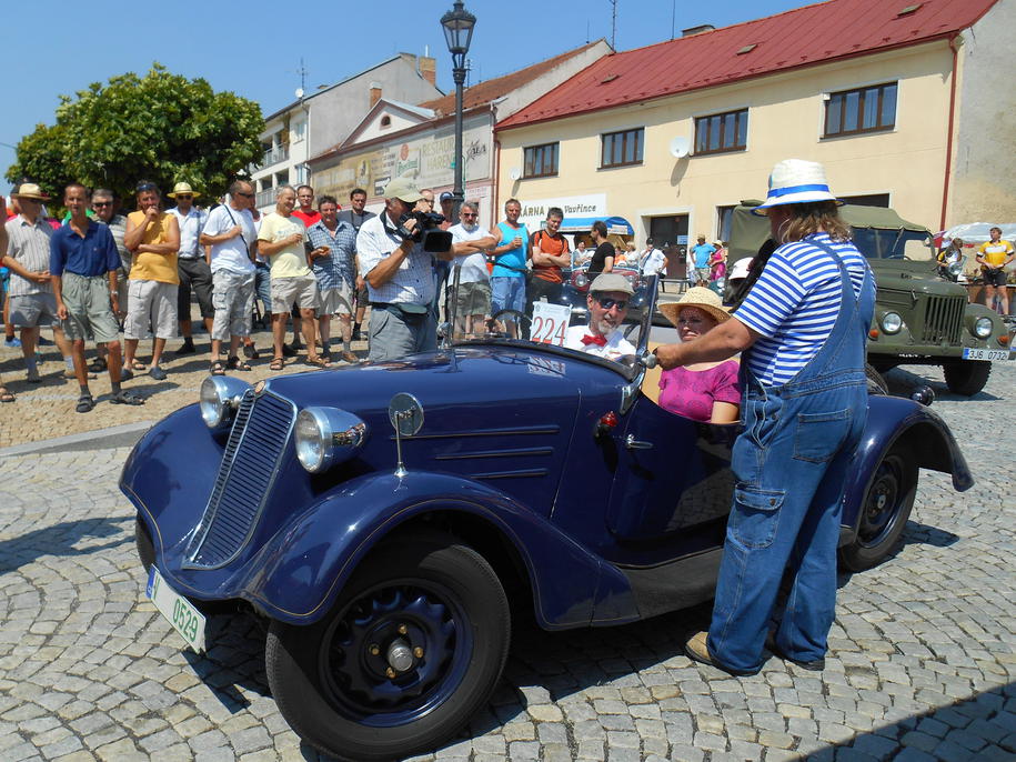 Mohlo by se zdát, že jubilejní desátý ročník nemohl ničím překvapit. Přesto bylo letos opět skoro všechno trochu jinak. Přijeli jsme již v pátek. Za krásného počasí nás před depozitem bystřického Tatraklubu přivítal a s naším Renaultem 4 CV na diplom vyfotil sám pan předseda klubu František Prosecký. A znovu za volant – směr ubytování. V Bystřici se totiž ve stejném termínu konají závody zyklistů, což značně zredukovalo dostupné ubytovací kapacity.
