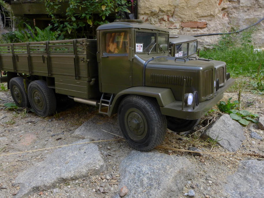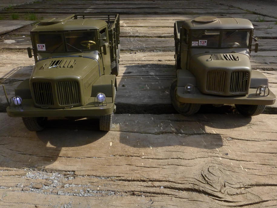 Letos na vyjížďku odstartovaly obě modelové Tatry. Řidičem T128 nebyl nikdo jiný než Matýsek. Možná už bych měl psát Mates, je z něj už "velké borec" a dobře se naučil T128 ovládat. Naše modely se nicméně nepromenádovaly po červeném koberci, nýbrž po šedém. Shodli jsme se s Františkem, že šedý koberec bude lépe ladit k vojenskému charakteru obou vozů. Po projetí s Tatrami pod startovacím obloukem jsme pak podnikli totéž ještě jednou v našem Renaultu.