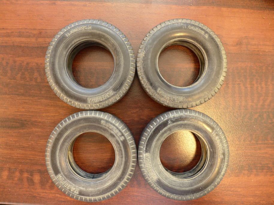 A zde již první svařená pneumatika – nahradila první prototypovou pneumatiku na levém předním kole. Druhá svařená putovala na pravé prostřední kolo, další pak na pravé zadní, levé prostřední a nakonec levé zadní kolo.