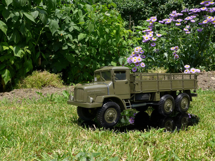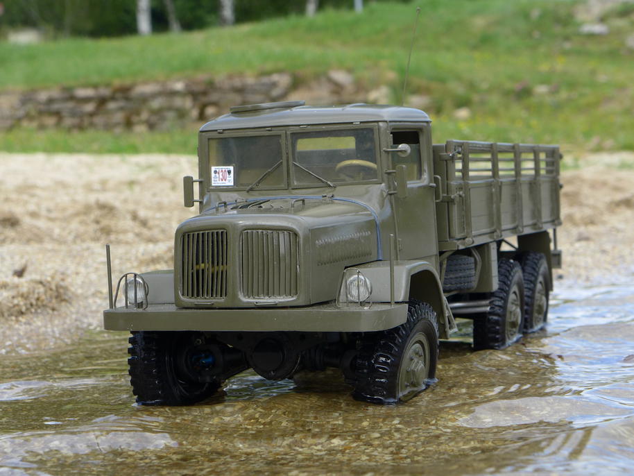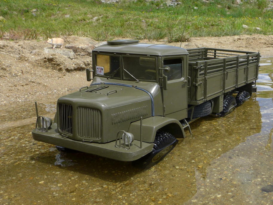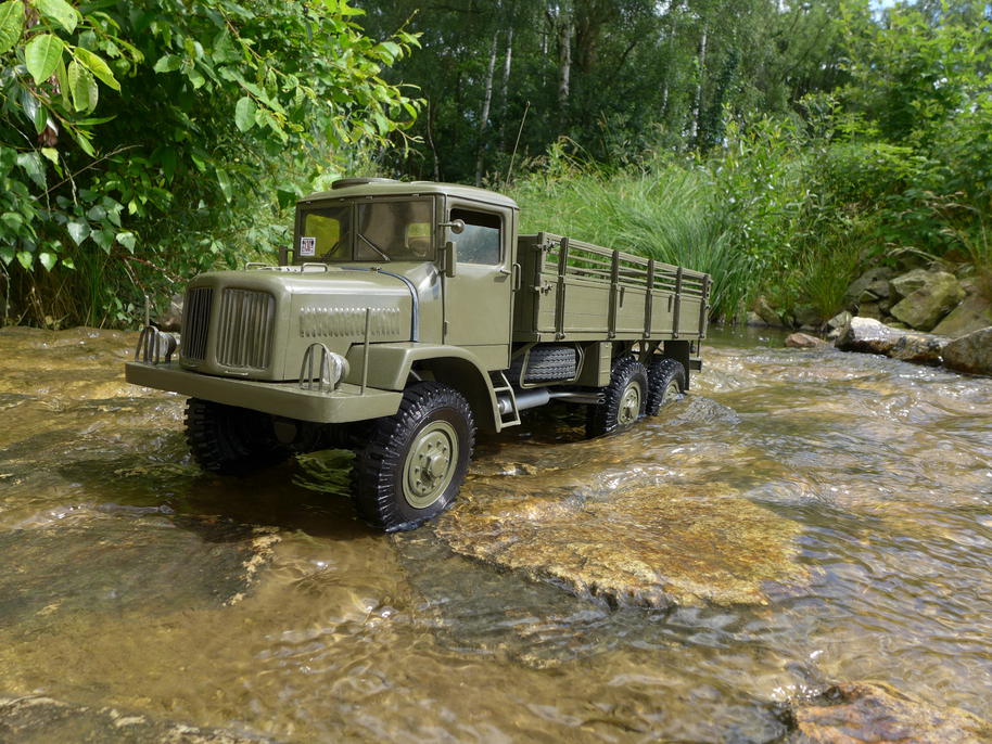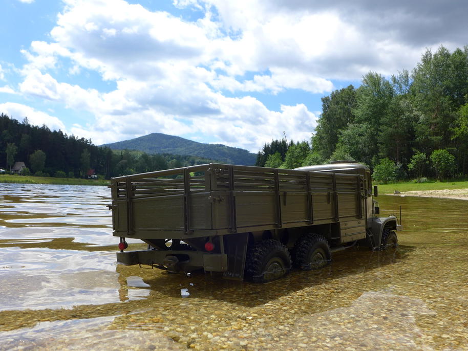 Podotýkám, že video není nijak "nafixlované", Tatra se skutečně ponořila do blátivé kalné vody až po kapotu. Dokonce i elektromotor byl zespoda zašpiněný, tedy brodivost by odpovídala skoro 90cm. Skutečné auto ale mělo brodivost ještě větší, neboť sání motoru se nacházelo v nejvyšším místě pod kapotou, a po sejmutí řemenů ventilátorů už může bránit hlubšímu ponoření jen odvaha řidiče. Tak brutální test ale nemá smysl s modelem provádět, nic nového z hlediska ověření průchodivosti by nepřinesl, a jen by zašpinil Tatru i na těch nejneuvěřitelnějších místech. V neposlední řadě by to odnesla elektronika, která není nijak zajištěna proti vniknutí takového množství vody.