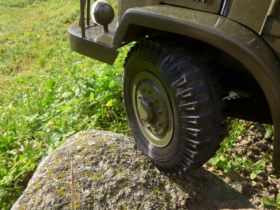 Bylo zajímavé pozorovat, jak se Tatra nyní při sklouznutí z nějakého kamene nebo jiné překážky jakoby zavlní vlivem propružení všech šesti pneumatik. To je zcela nový a realistický prvek chování modelu, původní tvrdé silniční pneumatiky toto neumožňovaly.