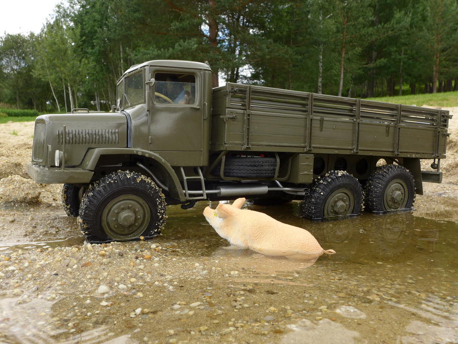 PS: všechna prasata opět přežila natáčení bez újmy na zdraví, jedno se dokonce urputně dožadovalo vstupu do kabiny ... zřejmě cítilo zbytky z vojenské stravy :)