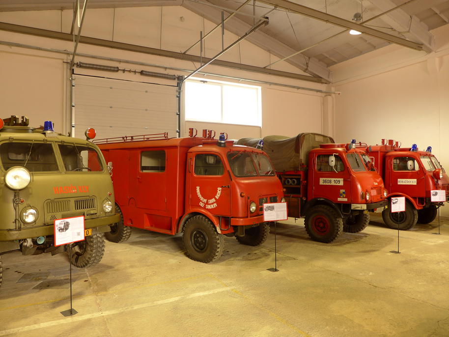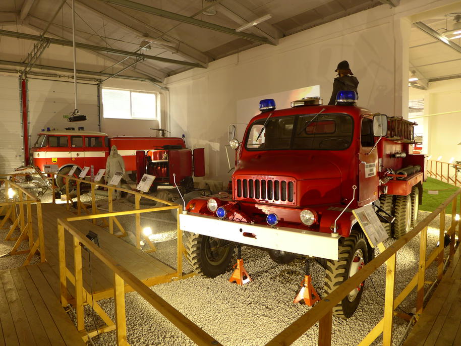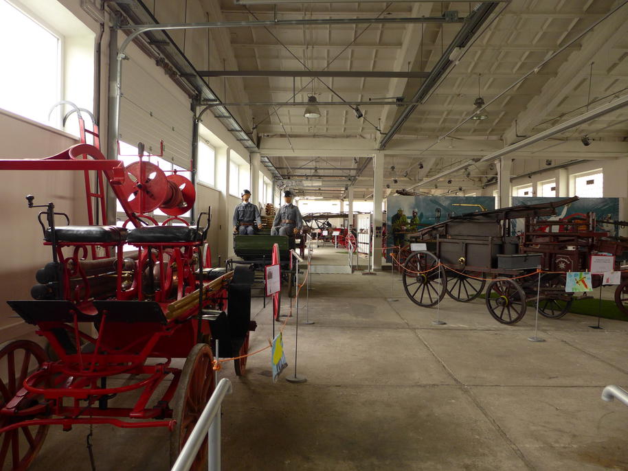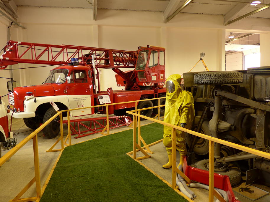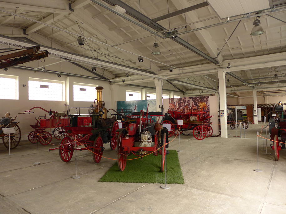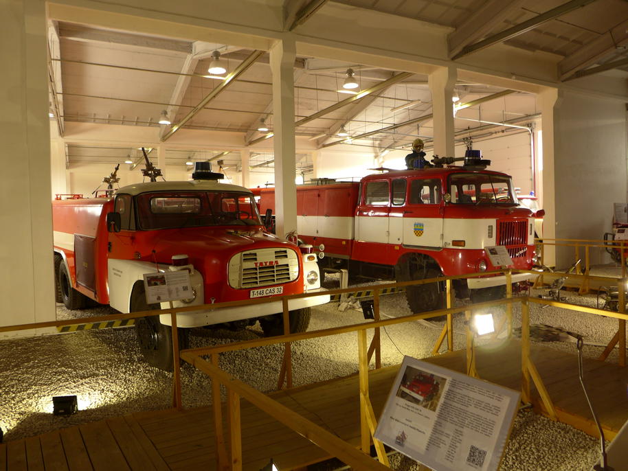 Expozice muzea HZS je organizována podobně jako v Lešanech. Každá hala je věnována nějakému období historie a je tu vystavena hasičská technika té doby. Začneme nejstaršími exponáty, dokonce tu jsou dvě dřevěné stříkačky z konce 18. století!