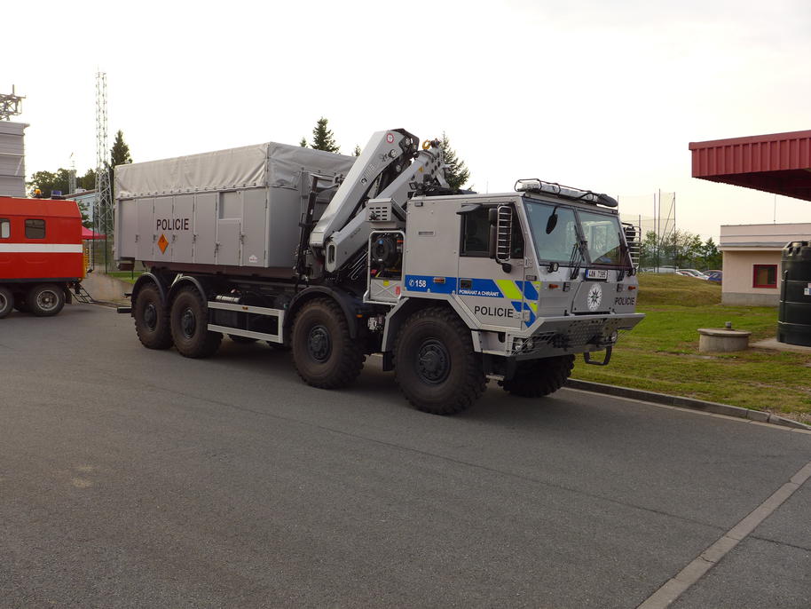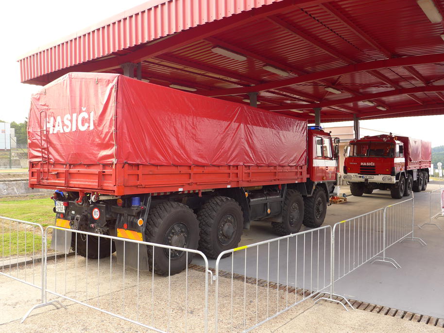 Ovšem Tatry 815-7 v jakémkoli provedení jsou ztělesněním nekompromisního užitkového vozidla s bezkonkurenčními jízdními vlastnostmi na silnici i v terénu. A byly tu zástupkyně všech variant – od 4x4, přes 6x6, až po 8x8. Osmikolky byly všechny v držení profesionálních hasičských sborů a zejména přímo místního sboru Zbirožského. Hasiči mi na tomto místě jistě doplní, o jaký útvar se přesně jedná.