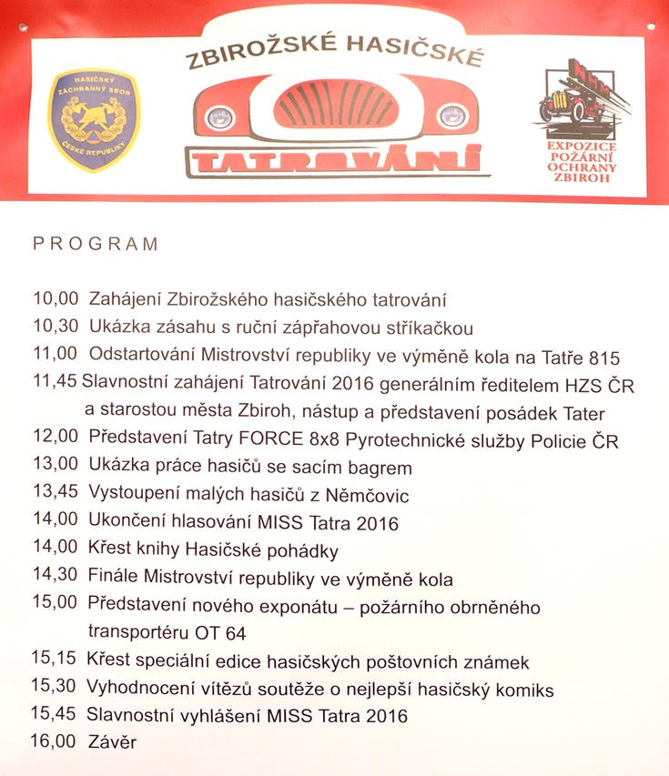 O uplynulém víkendu jsme se zúčastnili Hasičského Tatrování ve Zbirohu. Letošní ročník této zajímavé akce už byl šestým v pořadí. Jde de-facto o den otevřených dveří v muzeu Hasičského Záchranného Systému České Republiky (HZS ČR), který je spojený se vším, co má na sobě značku Tatra. Hlavními objekty zájmu jsou tedy především hasičská vozidla (nákladní i osobní) značky Tatra, ale také jejich modely.