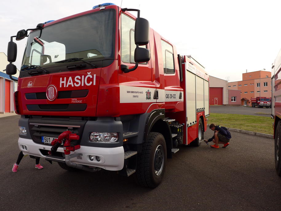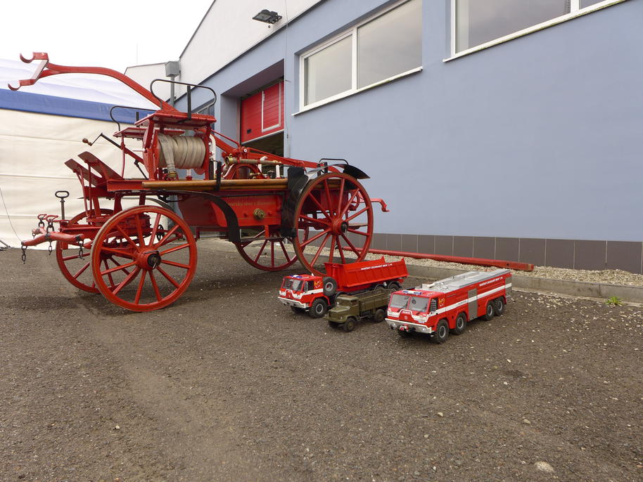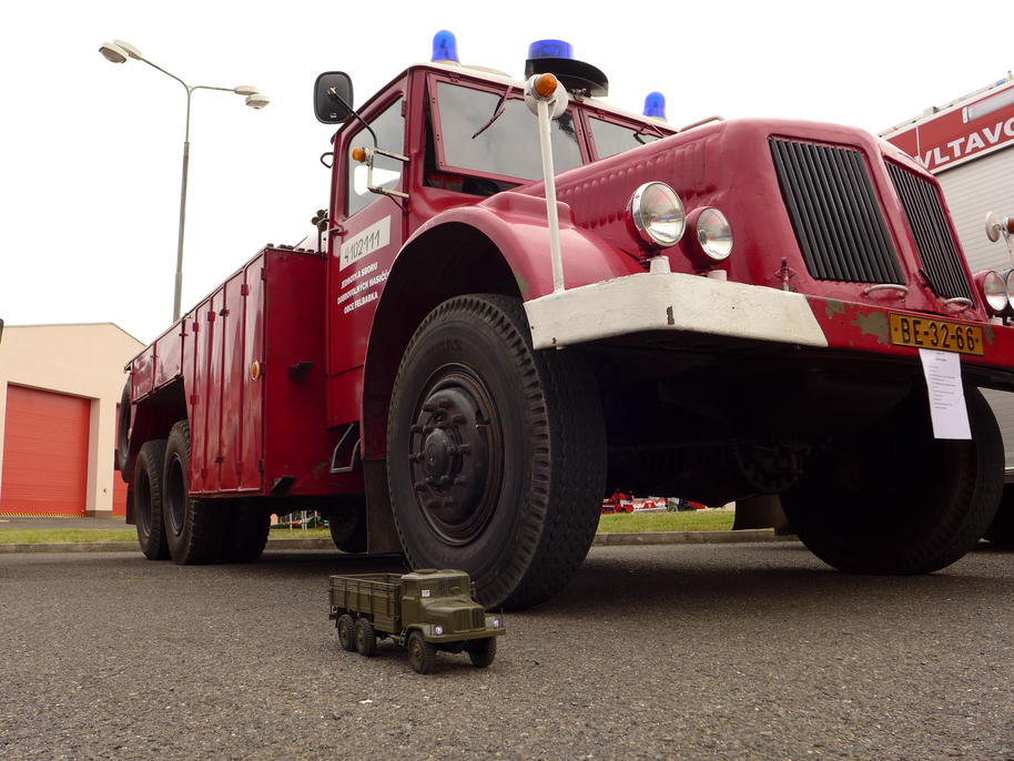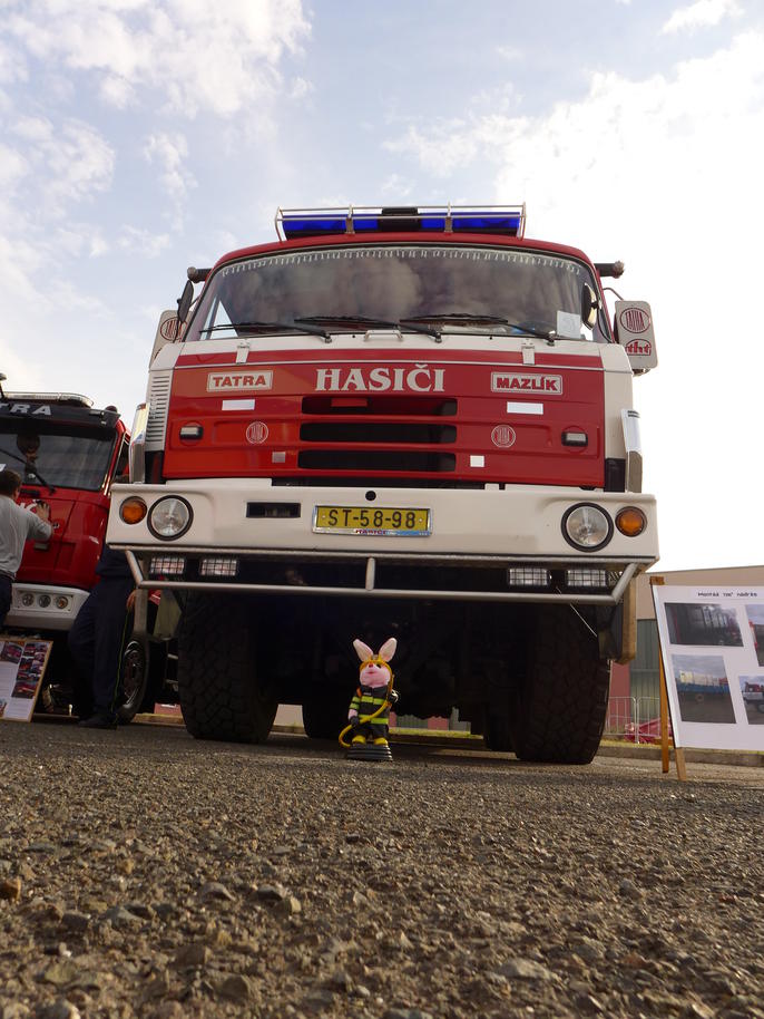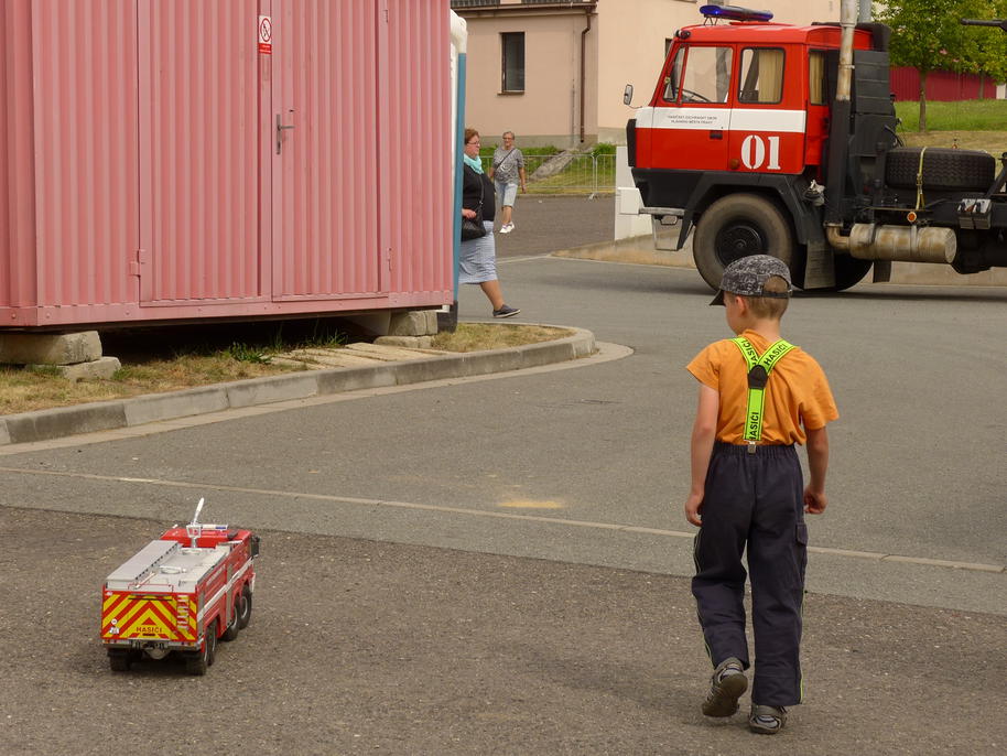 Před Tatrou po celou dobu hrdě postával zřejmě nejmenší člen hasičského družstva. Moc se ale nehýbal, že by vybité baterie :) ?