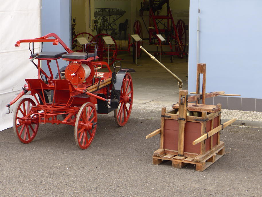 Druhým historickým kouskem byla ruční zápřahová stříkačka. Koní byl jaksi nedostatek, tak stříkačku táhlo stádo silných hasičů a to i přesto, že jejich velitel zapomněl odbrzdit. Na řádný průběh zásahu dohlížel "nejstarší žijící exponát muzea". Jak pravila paní mluvčí – chovají ho v kleci, krmí ho a jednou za rok ho nechají velet zásahu, neboť je jediný, kdo si práci s historickým stříkačkami pamatuje. Vše samozřejmě myšleno s nadsázkou :) .