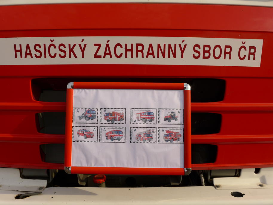 Po představení OT64 proběhl křest nové sady známek s hasičskou tématikou. Známky přivezla T815, dráček Ohniváček je sňal s přední masky Tatry a donesl na pódium, kde byly známky slavnostně pokropeny nejakou bublinkovatou ohnivou vodou za potlesku všech přihlížejících.