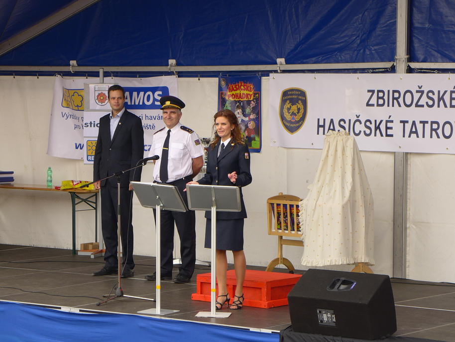 Po desáté hodině (a bitvě se zvukovou aparaturou) uvítala návštěvníky paní Nicole Zaoralová, mluvčí HZS společně s panem generálním ředitelem HZS a starostou města Zbiroh.