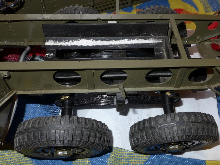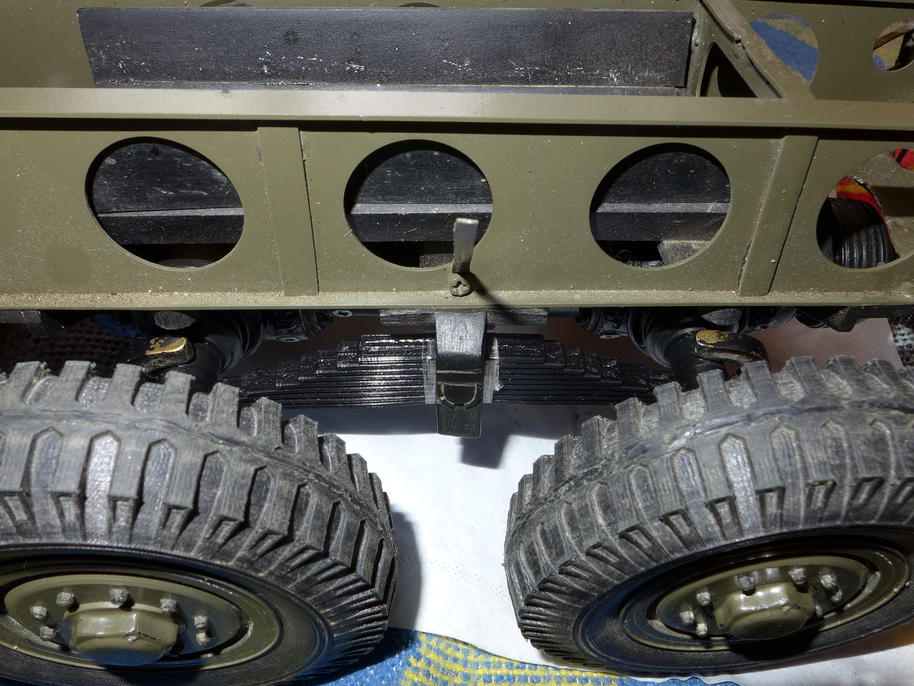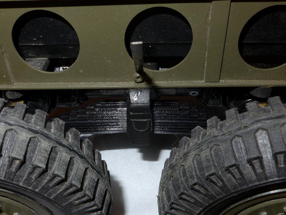 První funkční zkoušky proběhly již na jaře a do Chorvatska jsme jeli již s novým ověřovacím listovým perem na levé straně vozu (tím pádem Tatra stála trochu nakřivo, ale v terénu to stejně nebylo moc patrné :) ). Při náročných testech se ukázalo , že pružinové pásky se občas umí vyháknout z pružného obalu, čímž sklouznou z podkovičky a zadní polonápravy se rázem ocitnou na dorazech. Tento problém se podařilo vyřešit tím, že jsem konce listového pera "zavařil" pomocí 3D pera. Tím pádem také podkovičky drží v koncích listového pera výrazně lépe – červík podkovičky se lehce zaboří do pružného materiálu a tudíž není potřeba vymýšlet, kterak vyvrtat do značně odolného pružinového materiálu malou dírku, aby podkovička nespadávala.