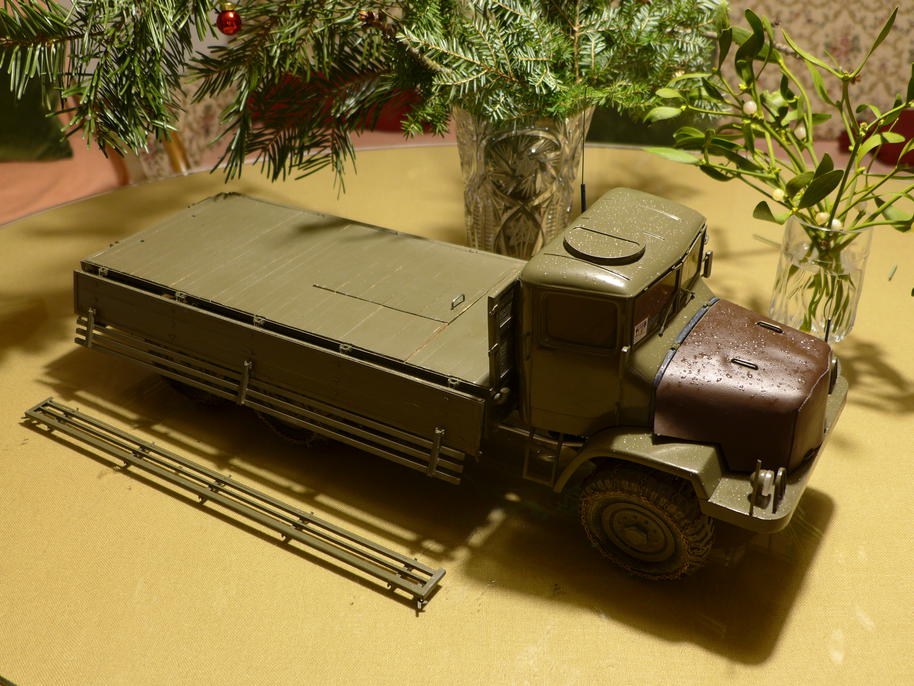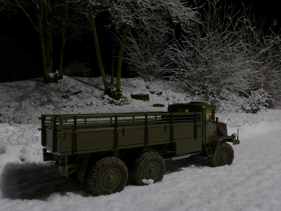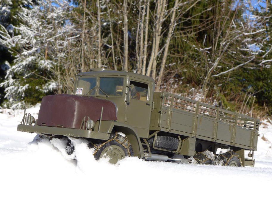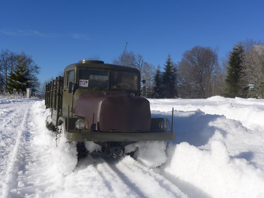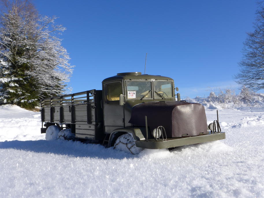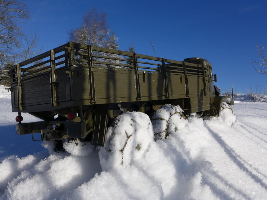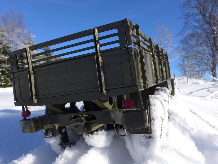 Původně jsem chtěl, aby Tatra trochu zapadala sněhem. Ten je ale zatím hodně mokrý – kabině to nevadí, ta je odolná, ale pro dřevěnou podlahu korby to dobré není.