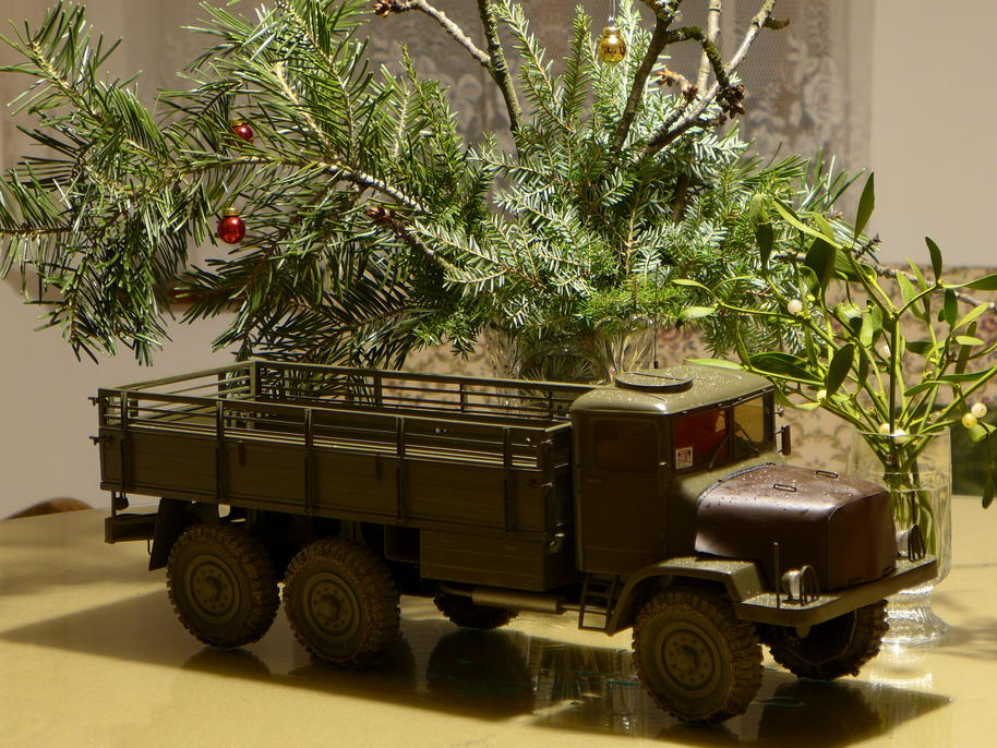 Po návratu jsem korbu důkladně utřel na svátečně nazdobeném stole (byla to nejbližší volná pracovní plocha :) ). A hle, olivová barva Tatry krásně ladí s větvičkami jehličnanů a jmelím, tak ještě jedna sváteční fotka pro radost.