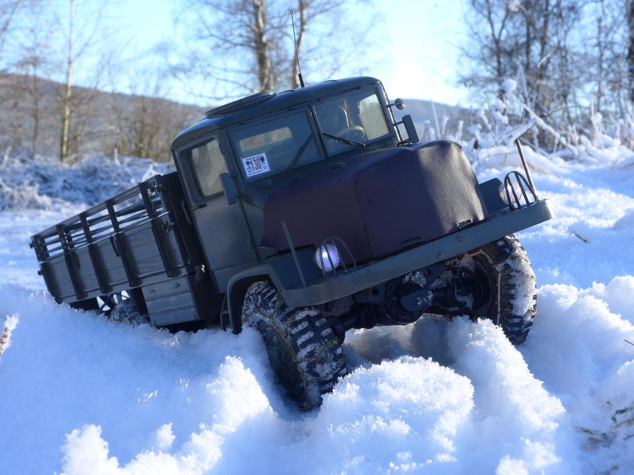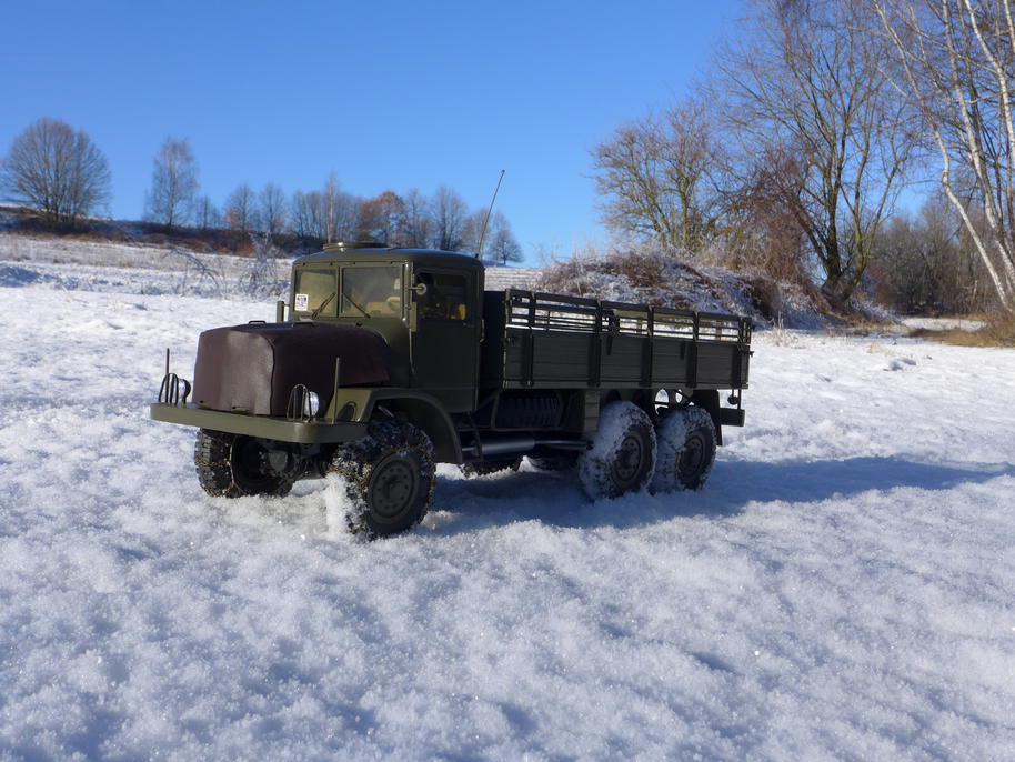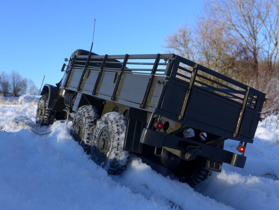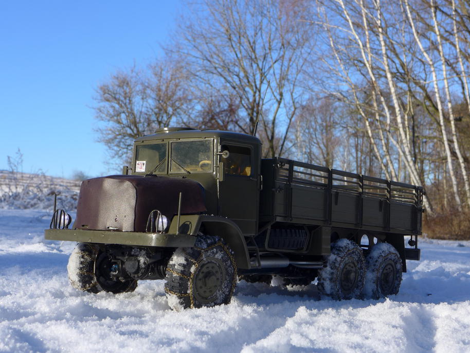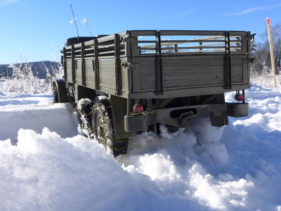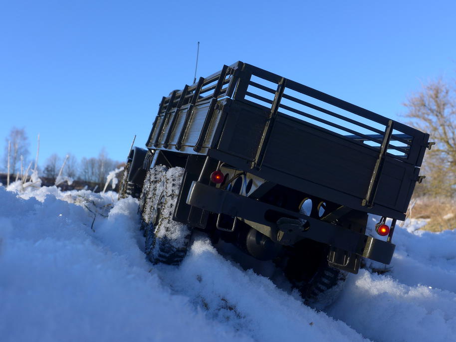 Druhý den ráno nás přivítalo slunečné a mrazivé počasí. Vyrazili jsme s Tatrou na malou expedici. Cílem bylo zjistit chování pneumatik s řetězy ve sněhu.