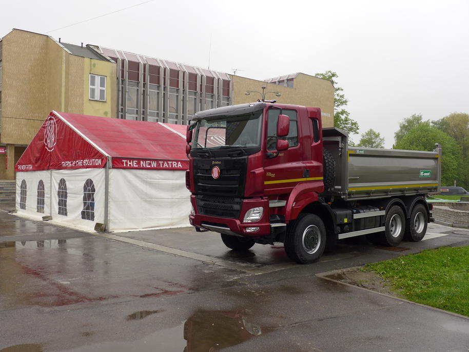 Prezentace firmy Tatra Trucks zahrnovala pouze přistaveného Phoenixe z omezené speciální série nazvané po prvním kopřivnickém automobilu "Präsident". Jsem rád, že jsem měl možnost vidět jeden z těchto exemplářů. Phoenix dorazil v sobotu ráno a od stanu vyhnal přibližovadla ostatních modelářů :) . Mělo to ale svůj význam – spolu s nápisy na Tatra-stanu se daly dělat pěkné fotokompozice: "The New Tatra" a "Tatra is THE Solution" a k tomu nový Phoenix.