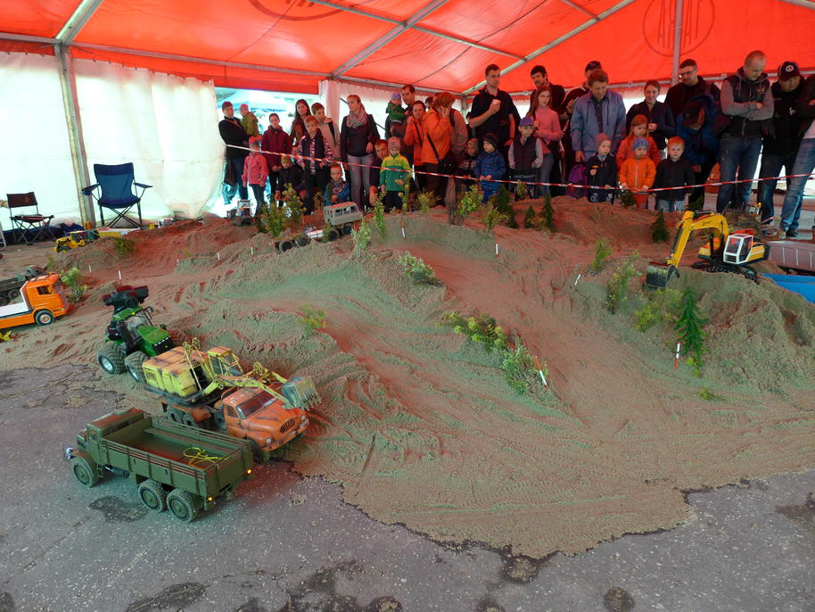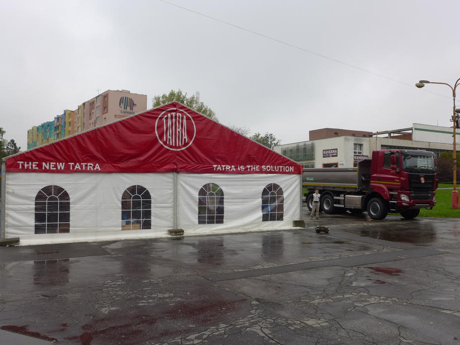 Náš modelový terén se opět skrýval před kulturním domem pod velkým Tatra-stanem. Půlka stanu byla vyhrazena pro nás, měli jsme dostatek místa pro modely i zázemí. Bohužel noví pořadatelé této modelářské soutěže ještě nemají potřebné know-how, že musí Tatru explicitně požádat o natažení bílých plachet pod střechu stanu. Takže fotky zase jako z Marsu a následná bitva s vyvážením bílé barvy v grafikém editoru. Zvlášť u videa velký problém...