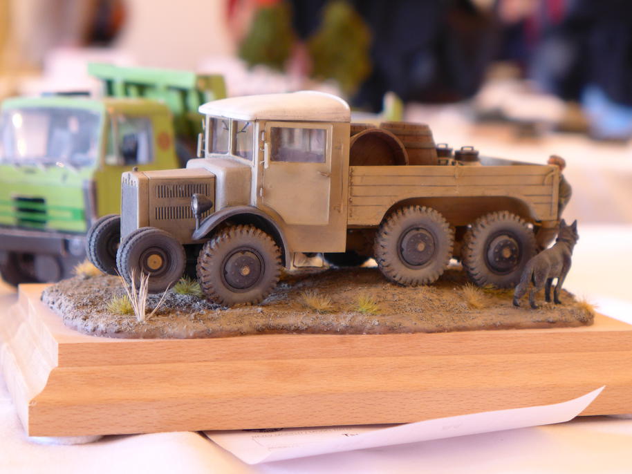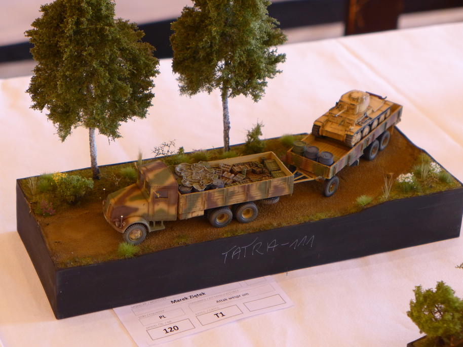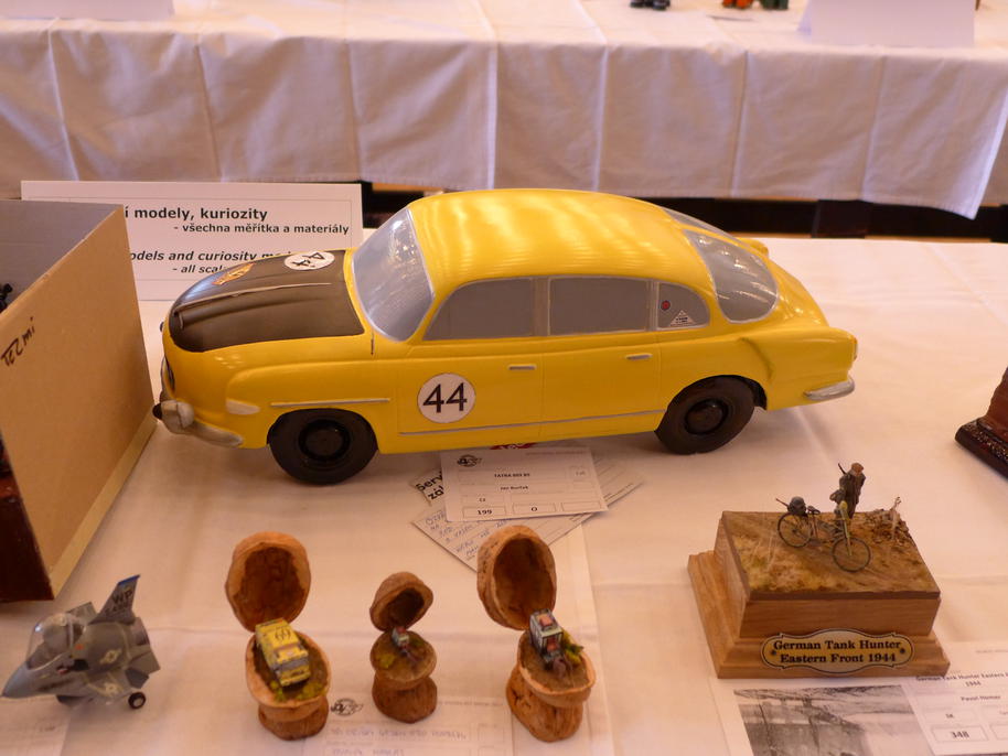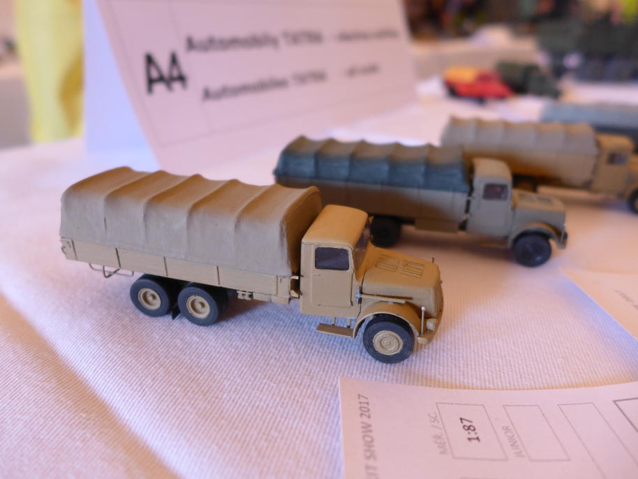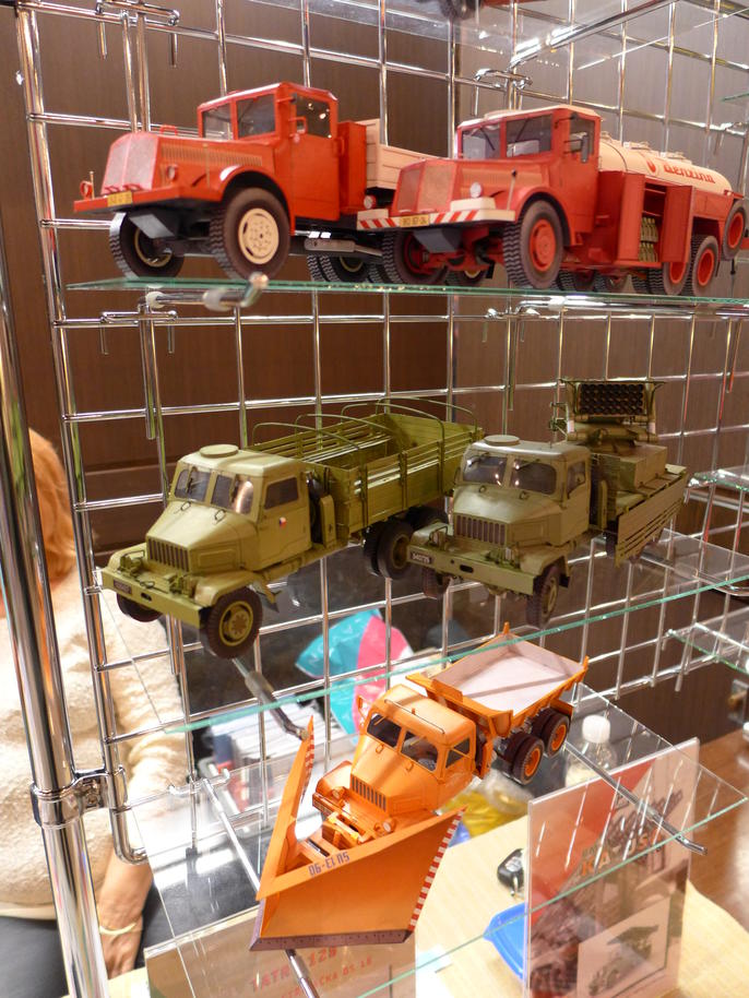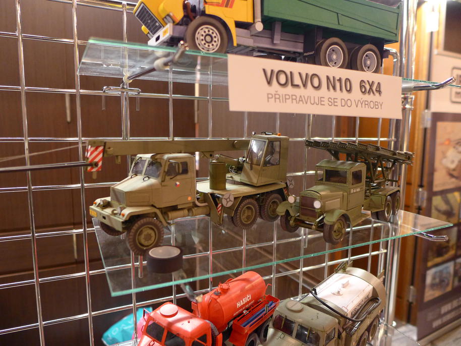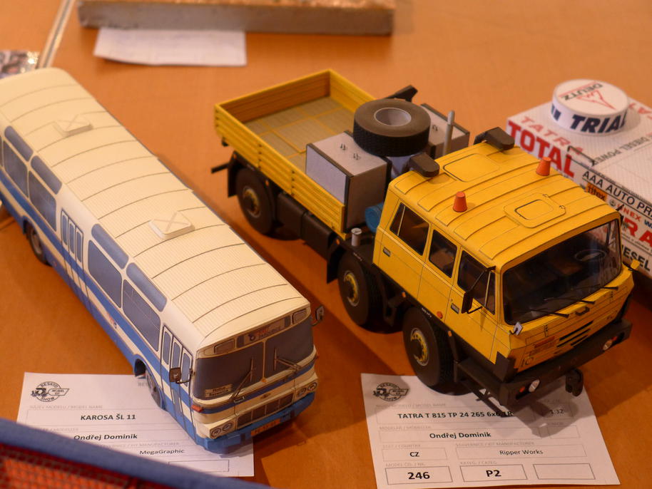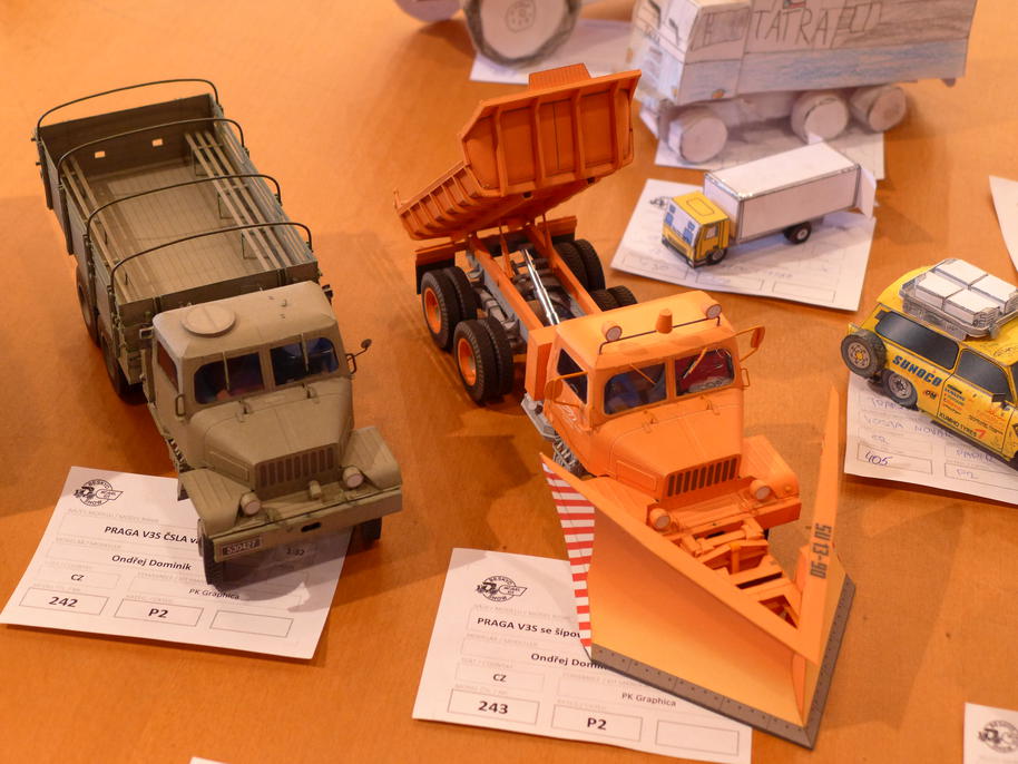 Z papíráků tu byl stánek PK Graphica s výstavkou slepených modelů Tatra 111, Praga V3S a Tatra 128 v barvách hasičského sboru ( a pořád má nesprávně pravý zadní brzdový válec směrem vzad ;) ) . U papírových PV3S je škoda, že tvary kabiny mají se skutečností jen málo společného – asi budu muset zase navrhnout vlastní kabinu . Naopak ŠL11 se povedla o dost lépe.