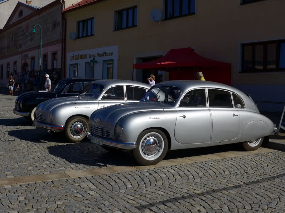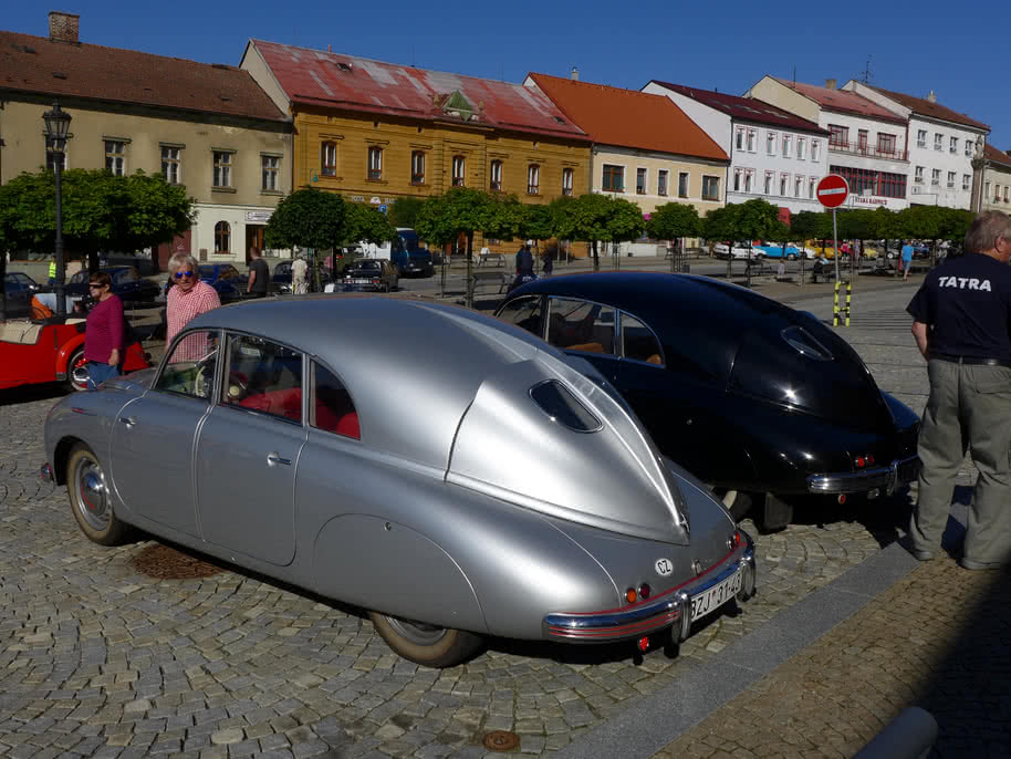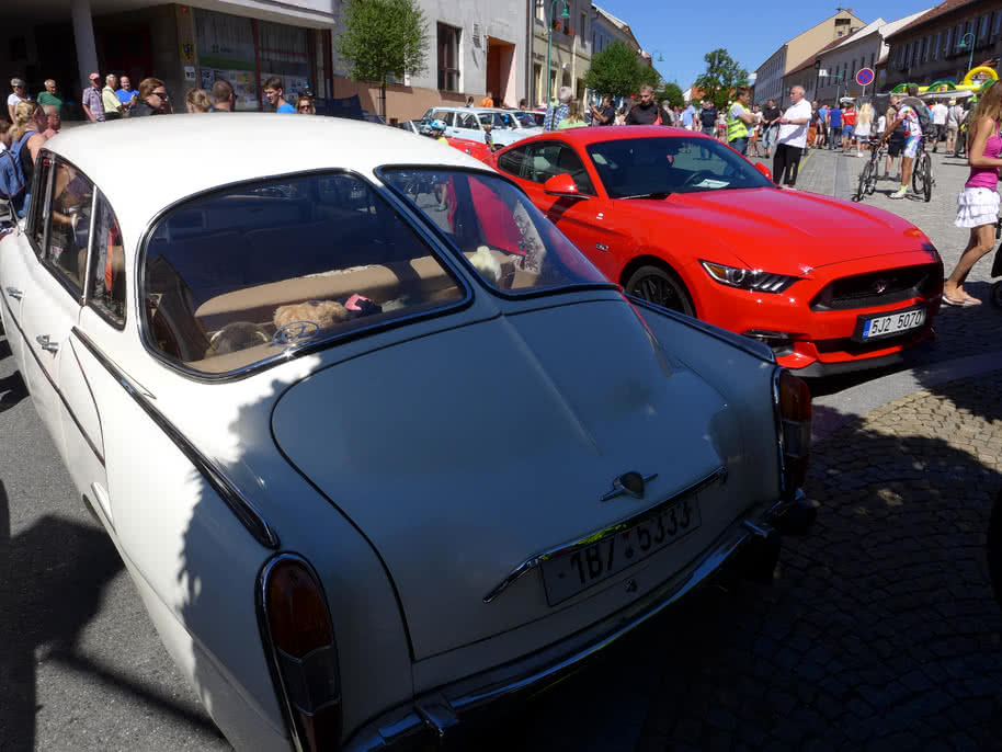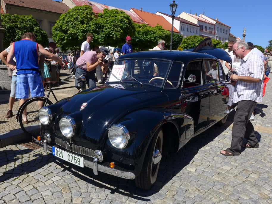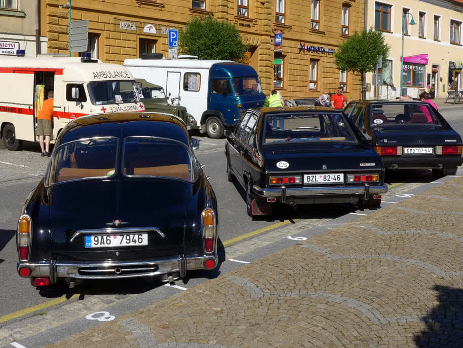 Letos se sešlo opravdu velké množství Tater. Velké vládní sedany T613 a T603 se řadily uprostřed náměstí vedle sebe a postupně vytvořily souvislou řadu až nahoru.