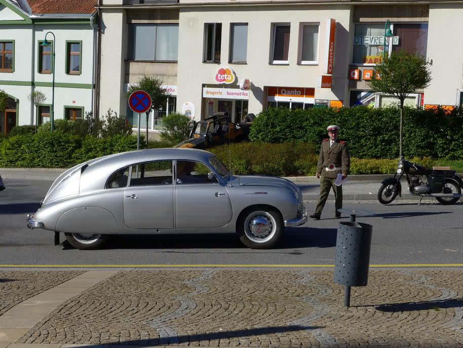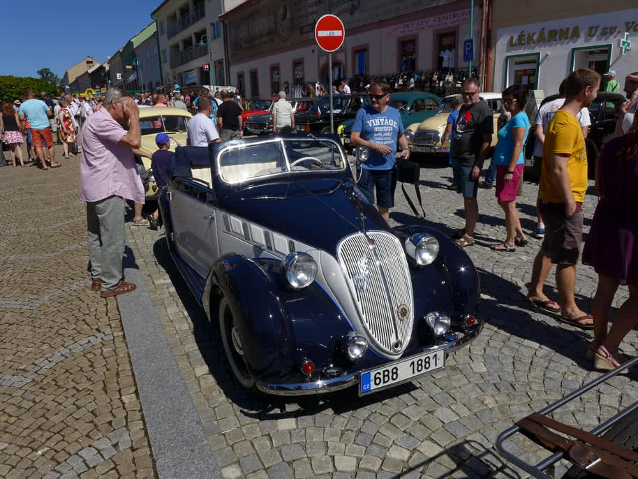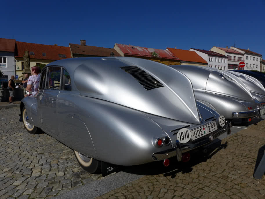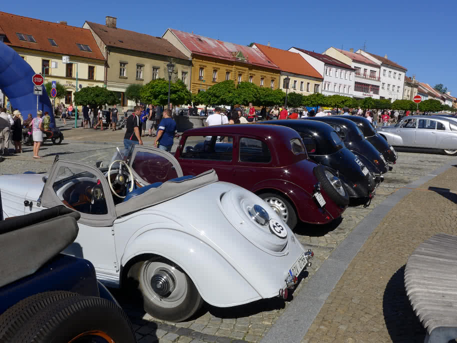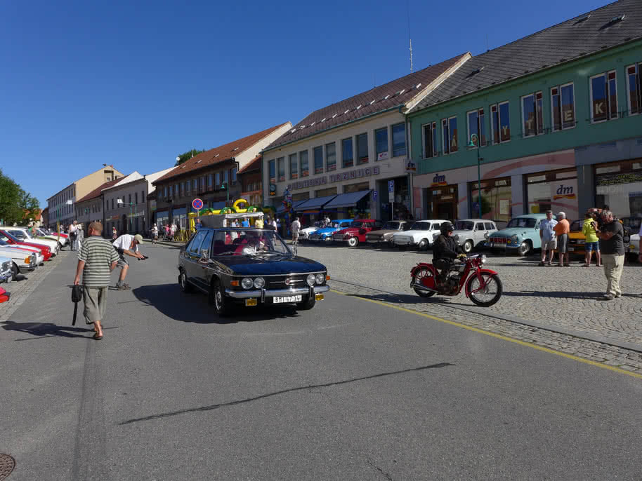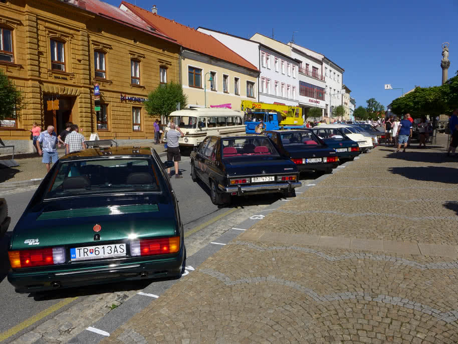 Letos se sešlo opravdu velké množství Tater. Velké vládní sedany T613 a T603 se řadily uprostřed náměstí vedle sebe a postupně vytvořily souvislou řadu až nahoru.