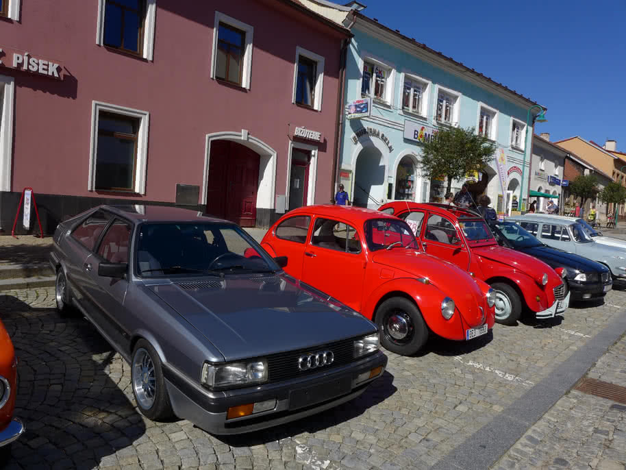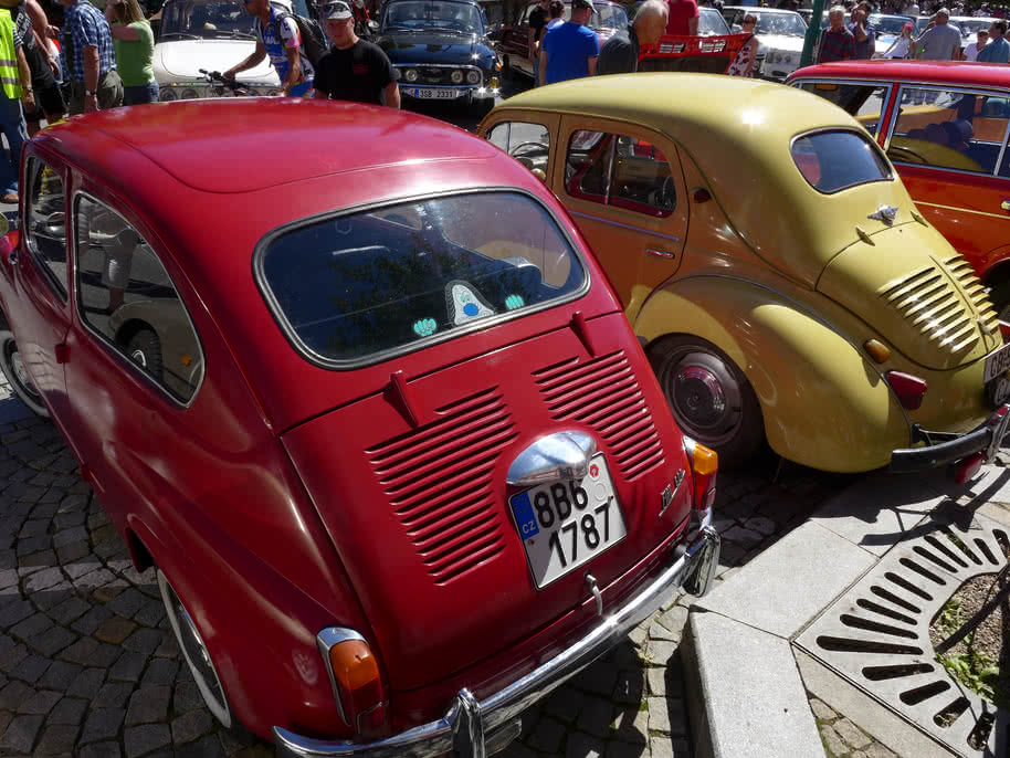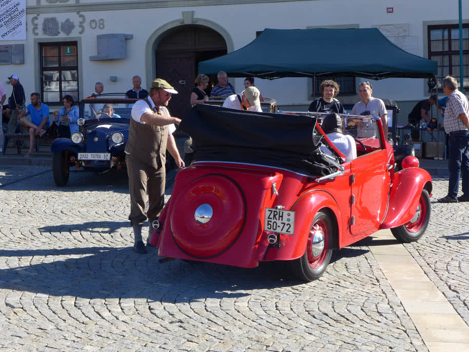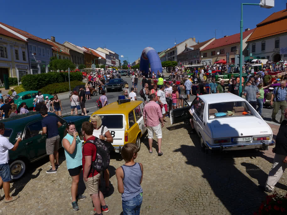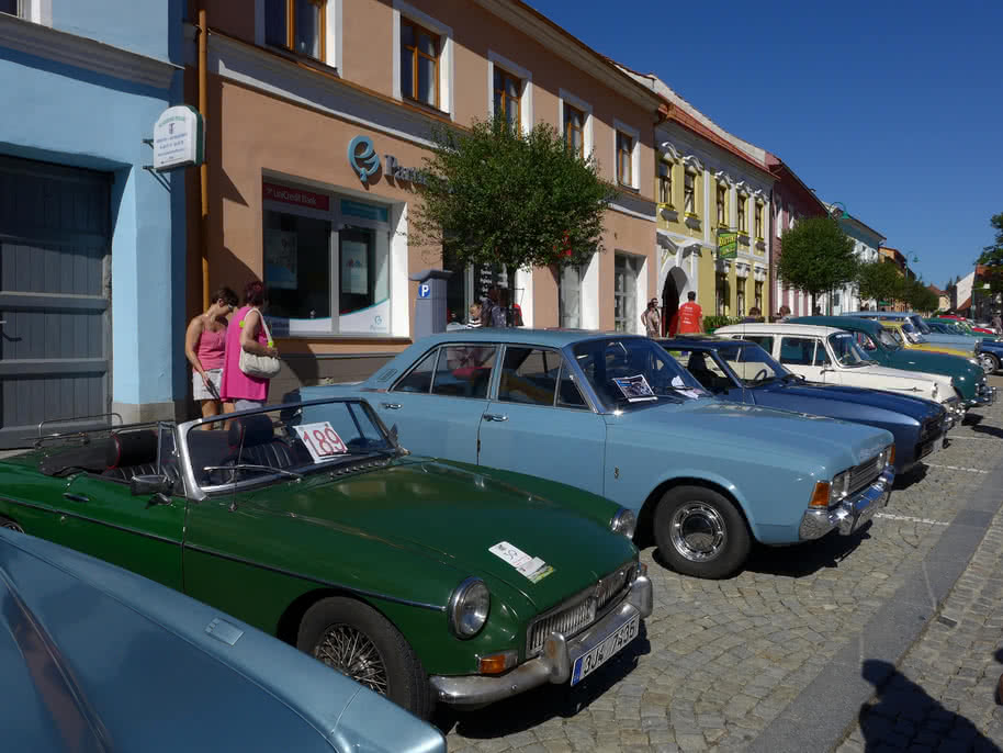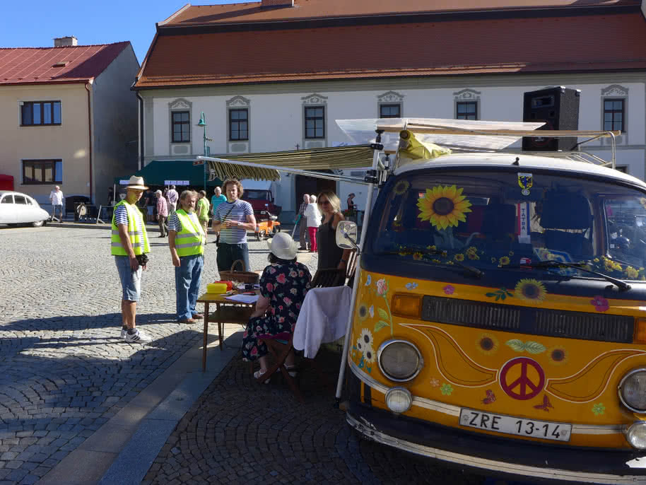Náš brzký příjezd nám umožnil vychutnat si atmosféru postupně se zaplňujícího náměstí od samého začátku. Regulovčíci chvilku optimalizovali naše parkování – postupně jsme vystřídali asi tři místa na náměstí, než nám bylo přiděleno to správné – v horní části náměstí akorát na délku našeho vozu.